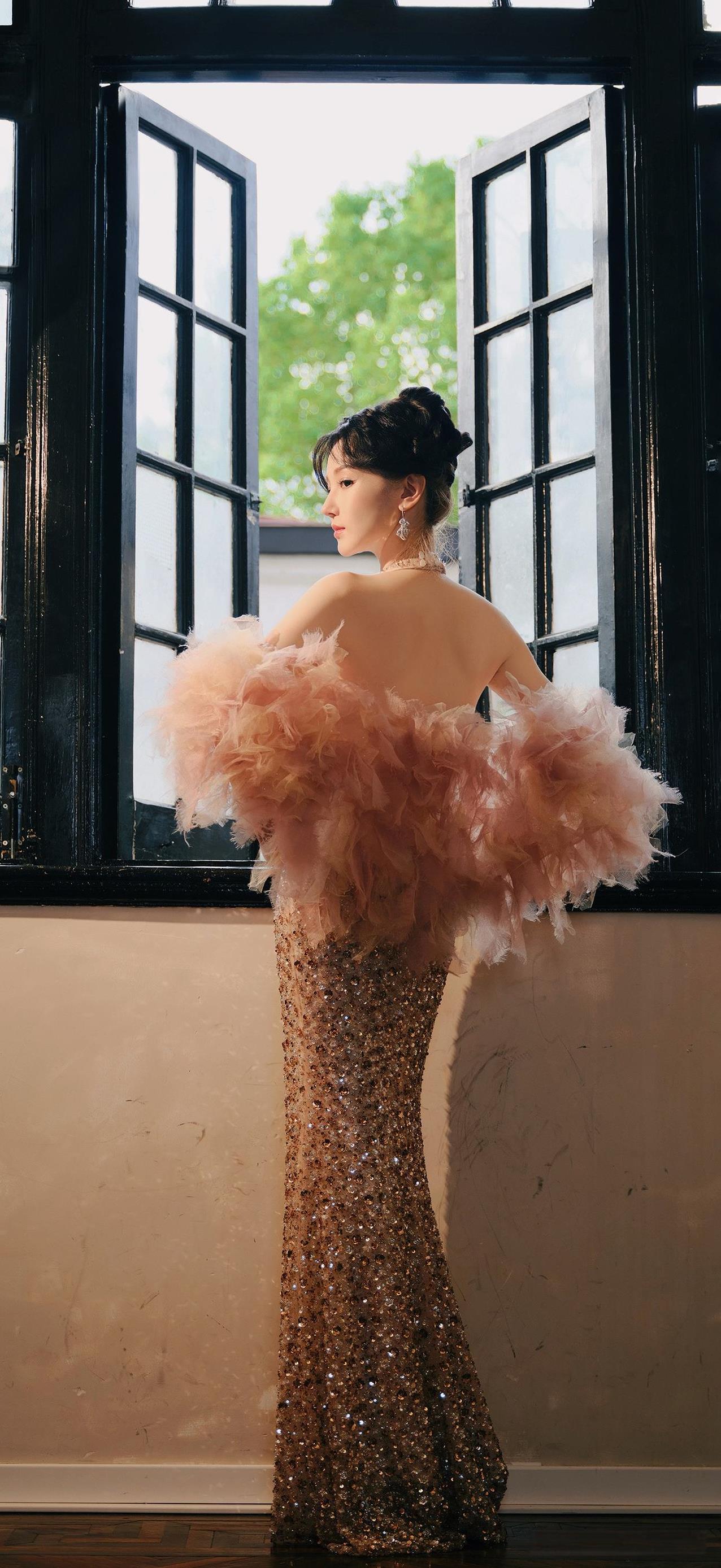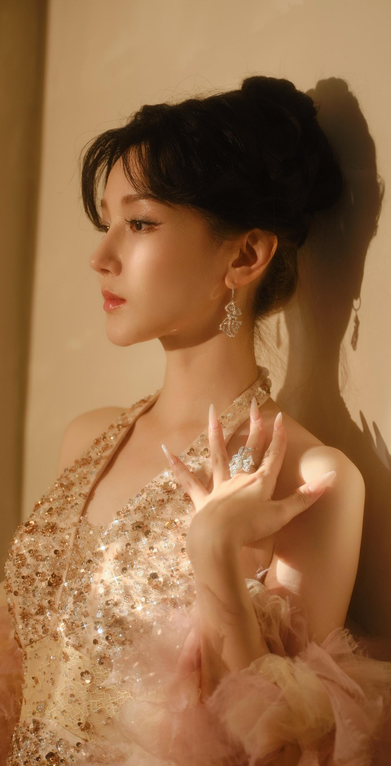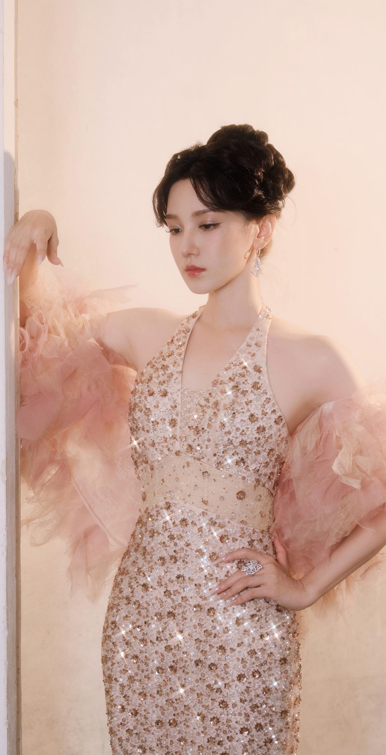 陈小纭一袭亮片礼裙,粉纱袖点缀尽显高贵迷人,壁纸级美貌太绝了