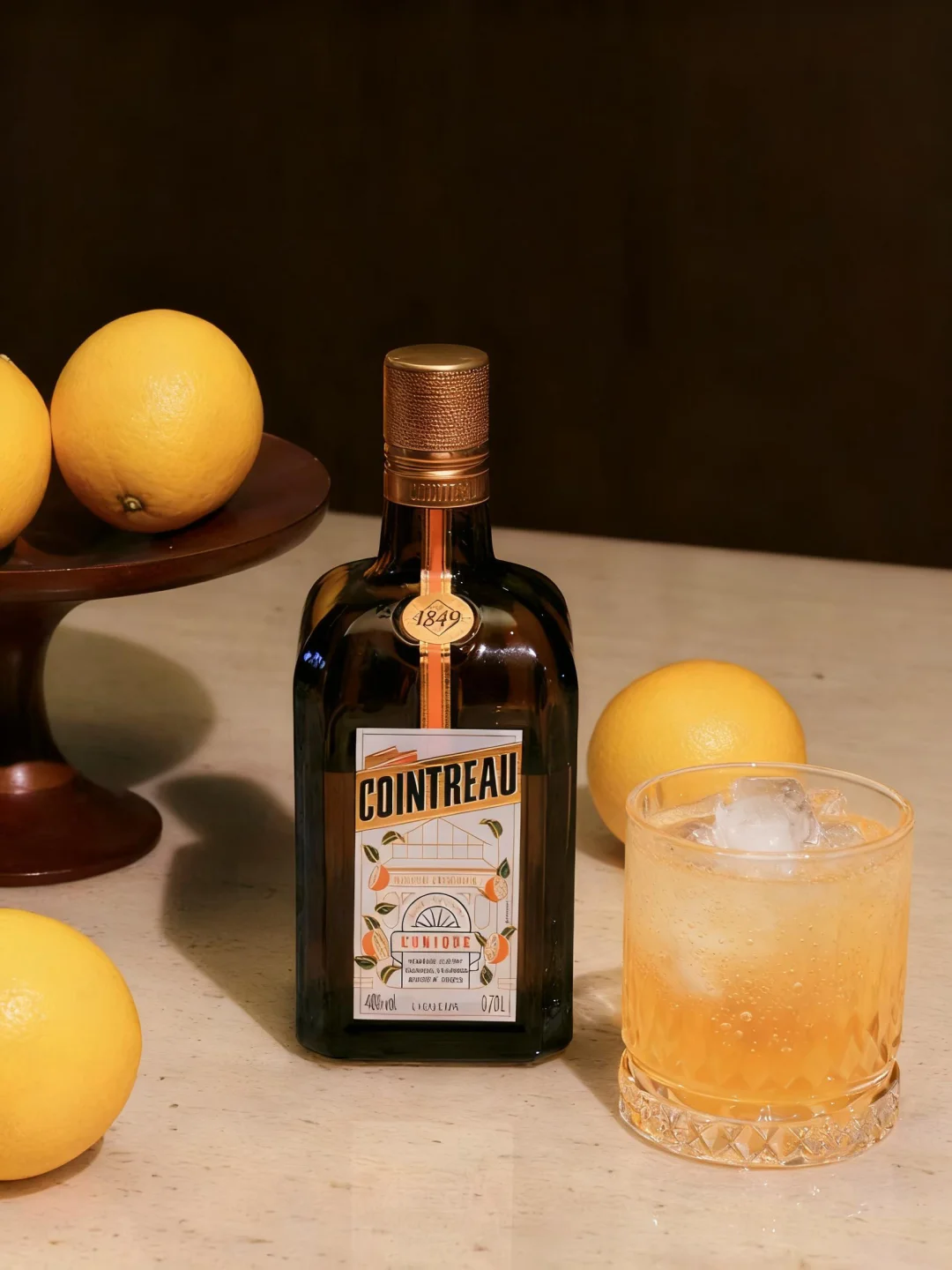 君度橙酒 + 新鲜橙汁 + 冰块适量 + 橙片适量