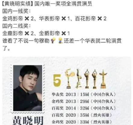 黄晓明影帝战绩可查,刚跟朋友打赌黄晓明这次金鸡能不能拿奖,我说“就凭吴优喂蛋糕那场戏,他就该赢”,朋友也认同——从《中国合伙人》到现在,他的演技一直在进步,两次影帝就是最好的铺垫!