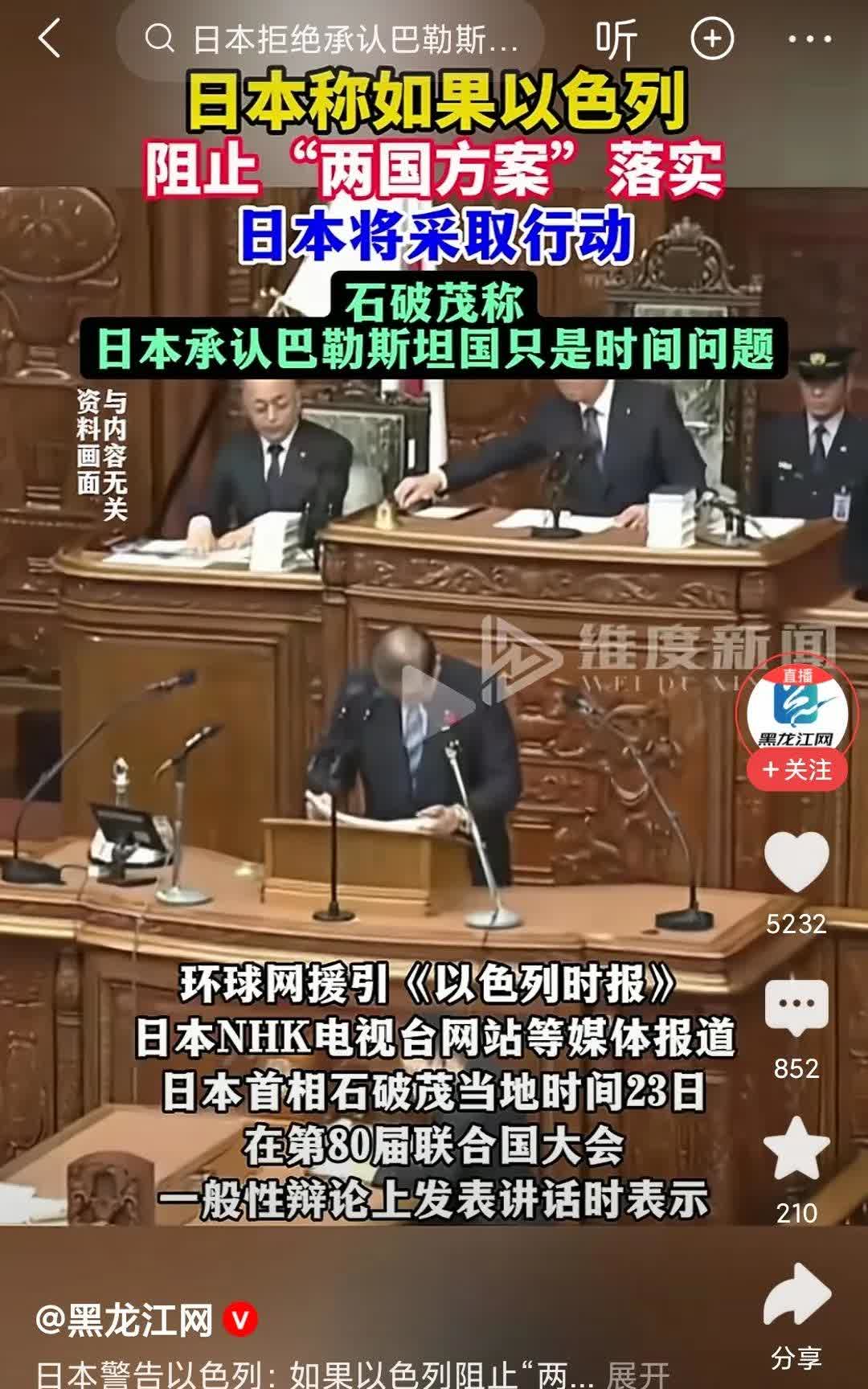 日本顶不住了国内外的压力也要承认巴勒斯坦国了。 再不承认日本政府也顶不住国