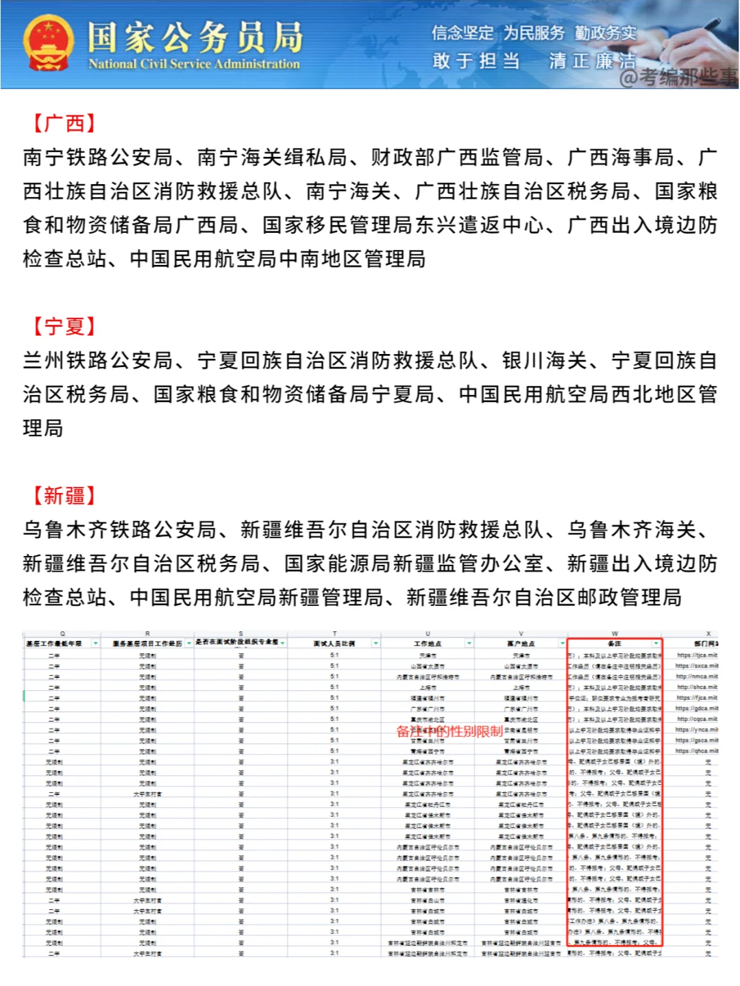 国考当中,哪些岗位女生可以报考?各省统计如下(不统计中央岗位及参公事业单位):