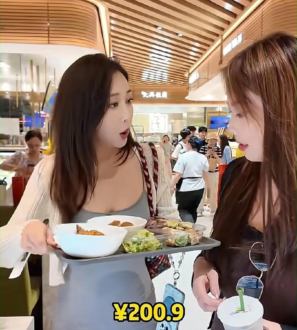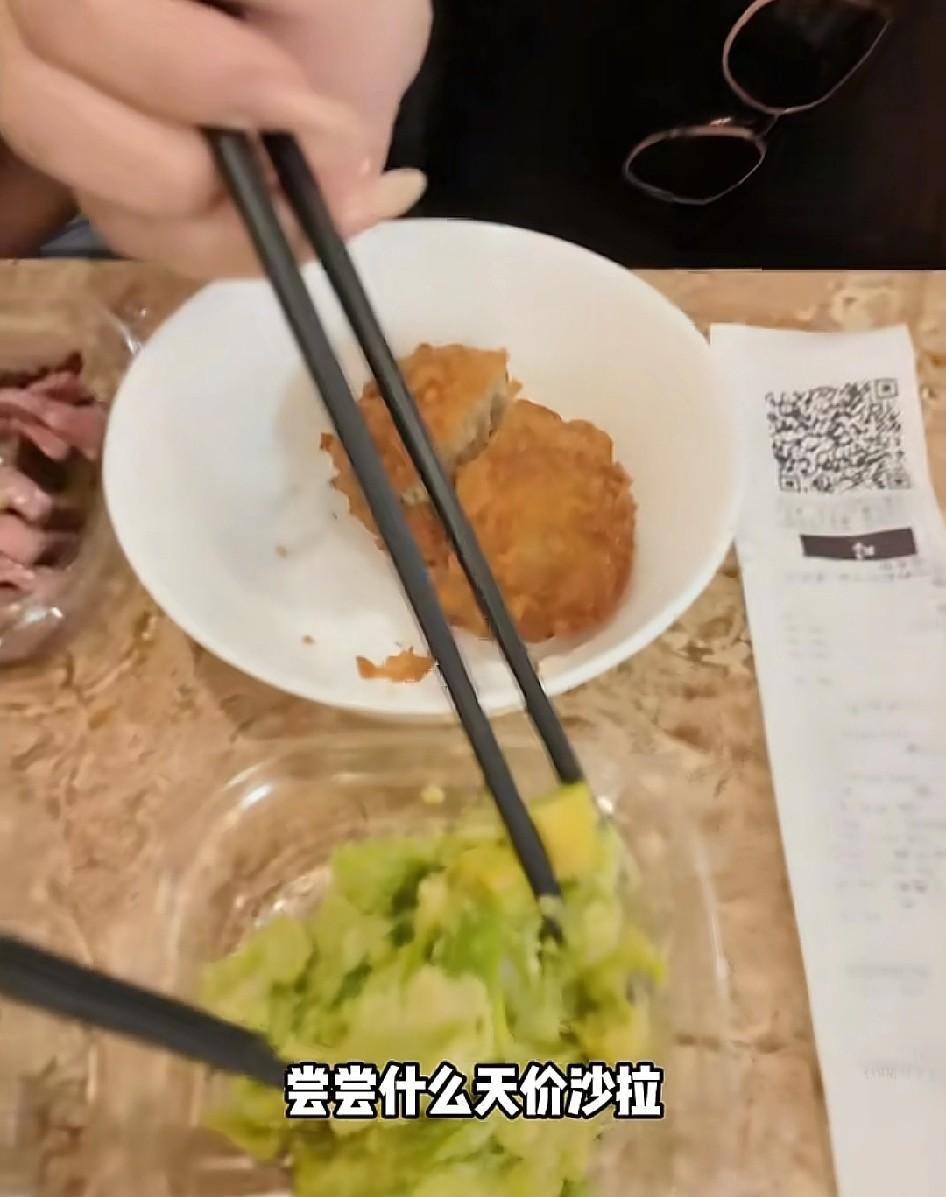 杜若溪的表妹来上海帮她看孩子,她带着表妹去吃沙拉,没想沙拉是按克卖的,100克2