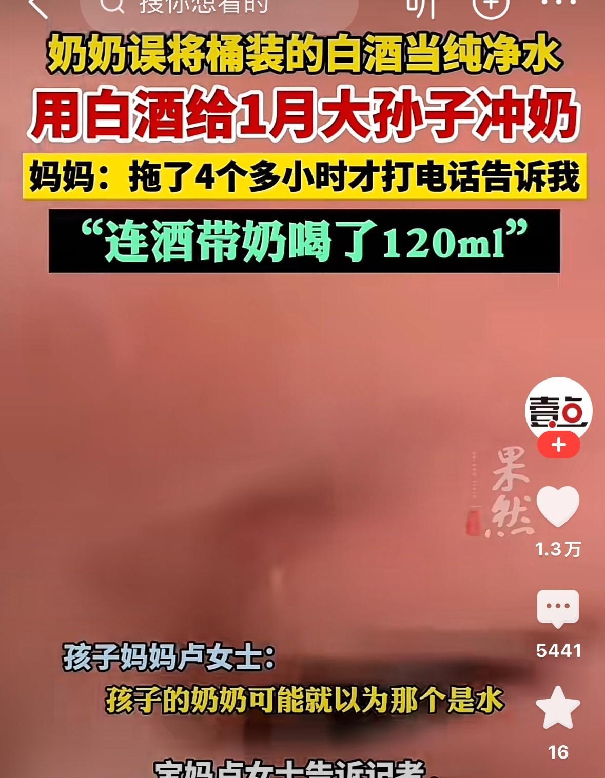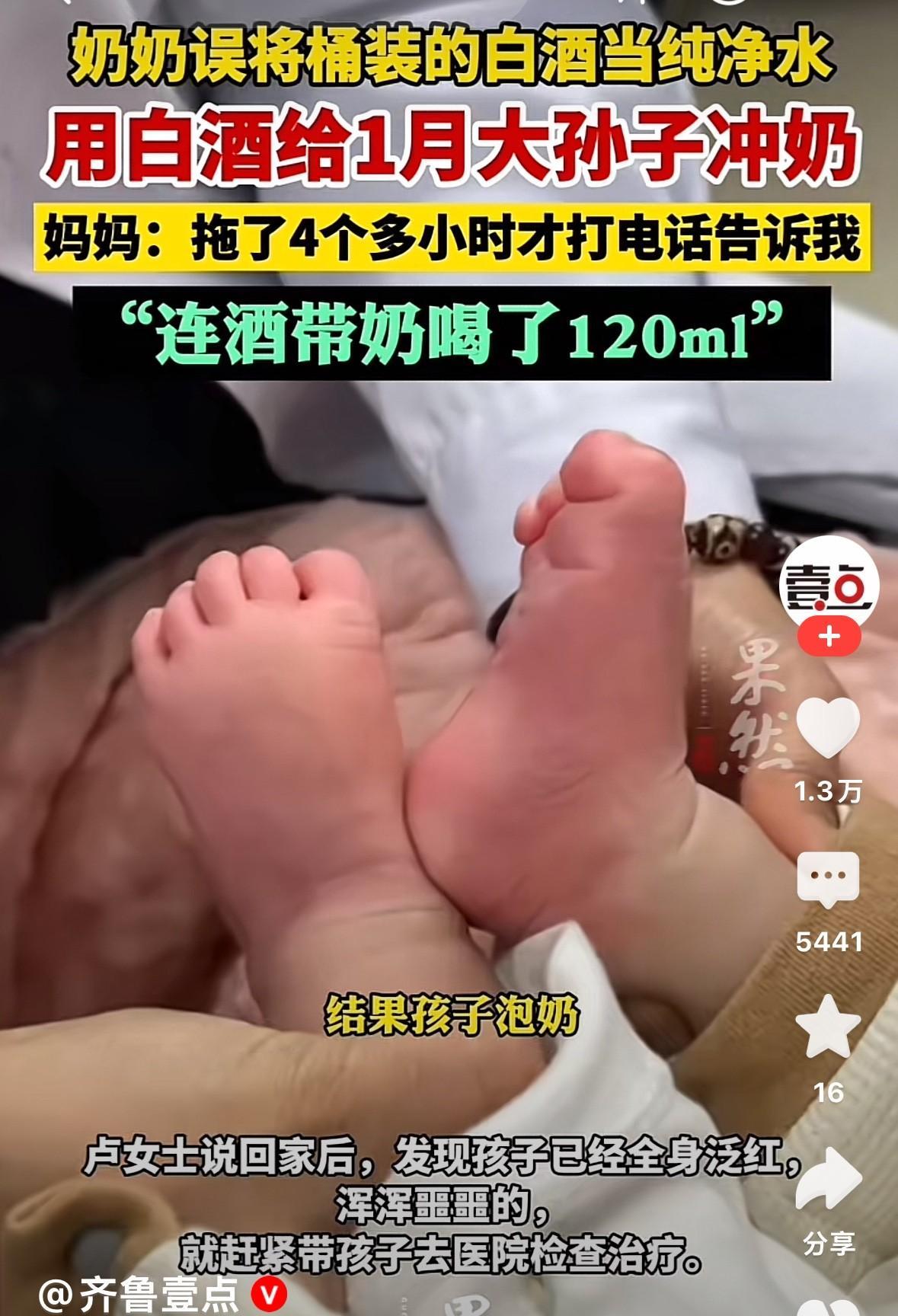 奶奶误用白酒给两个月幼儿冲奶,中午已经发现状况,奶奶也没送医院,更没跟孩子妈妈说