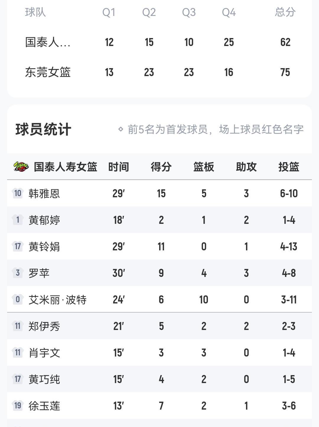 东莞女篮75-62国泰人寿女篮 晋级亚洲女子篮球联赛四强