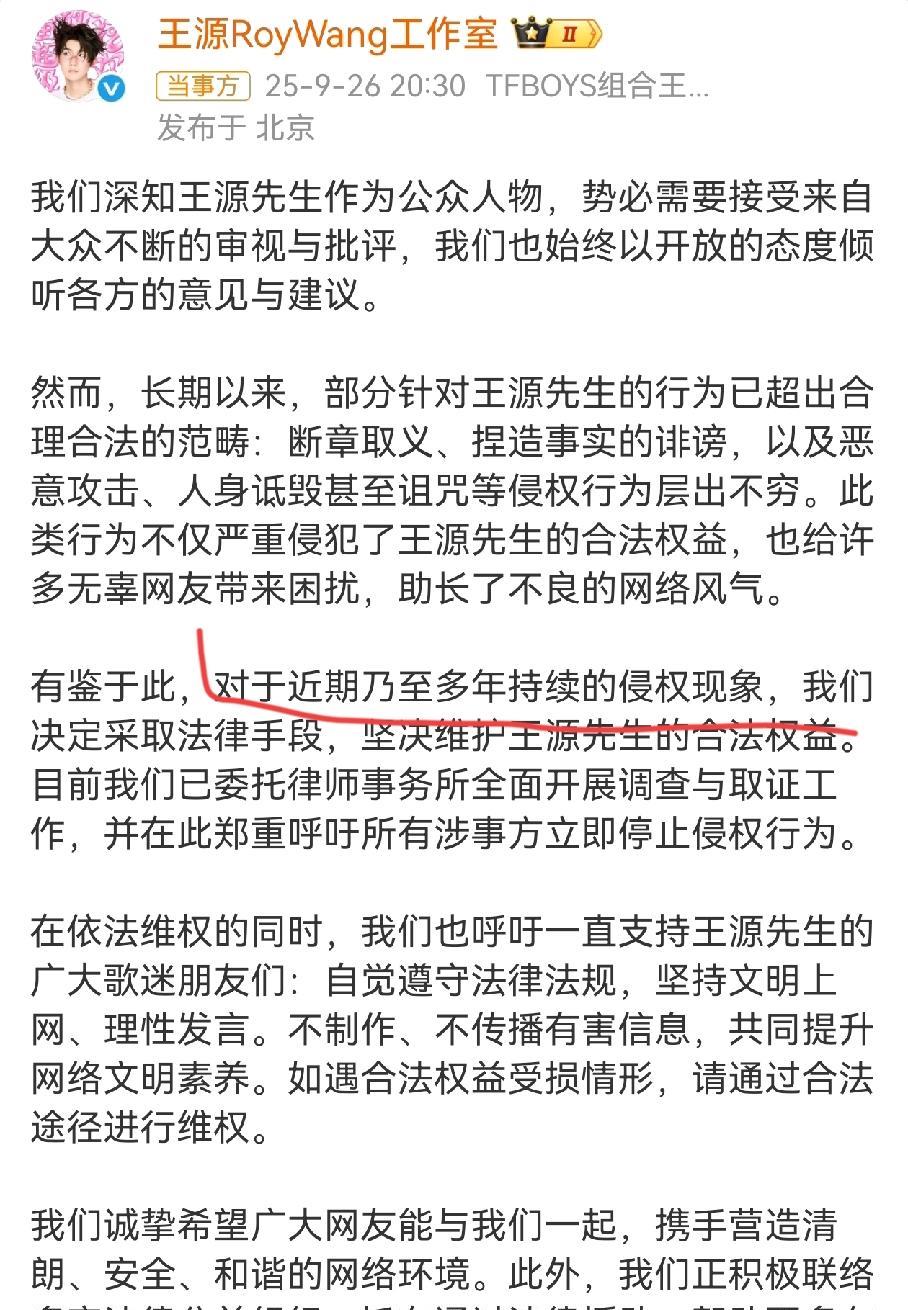 王源工作室发声明,这次彻底不忍了。 将起诉侵权行为,就差把律师函甩“王扁”脸上了