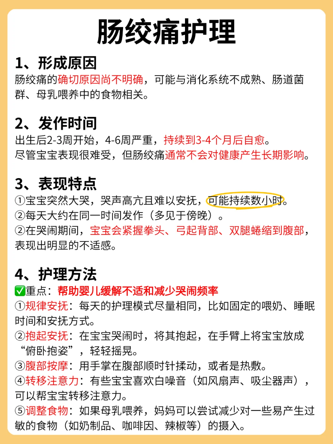 1、肠绞痛是正常的生理发育现象,出生后2-3周开始,4-6周严重,持续到3-4个月后自愈。