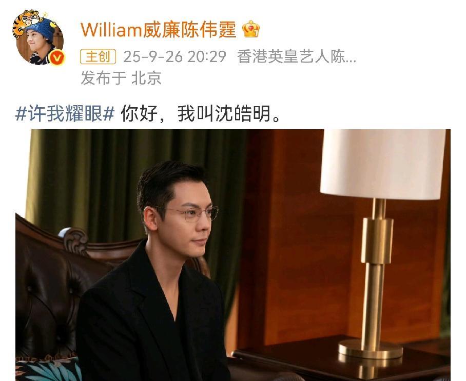 要不赵露思还是把微博账号找回来吧 《许我耀眼》开播,陈伟霆一个人孤零零的宣传介绍“你好,我是沈浩明”一个能@ 的人都没有。 首日热度就破了27000剧爆了,陈伟霆得一个人宣传很多次,cp爆了,一个人的独角戏,看着就有点可怜。