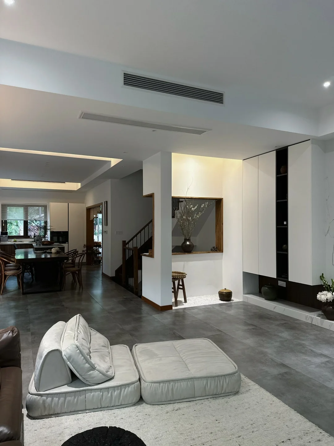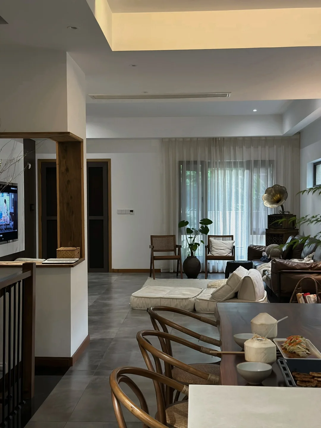 不要满墙花纹墙纸或复杂石材造型,地砖通铺。硬装就像山水画里的“留白”,给软装留出更多发挥空间。