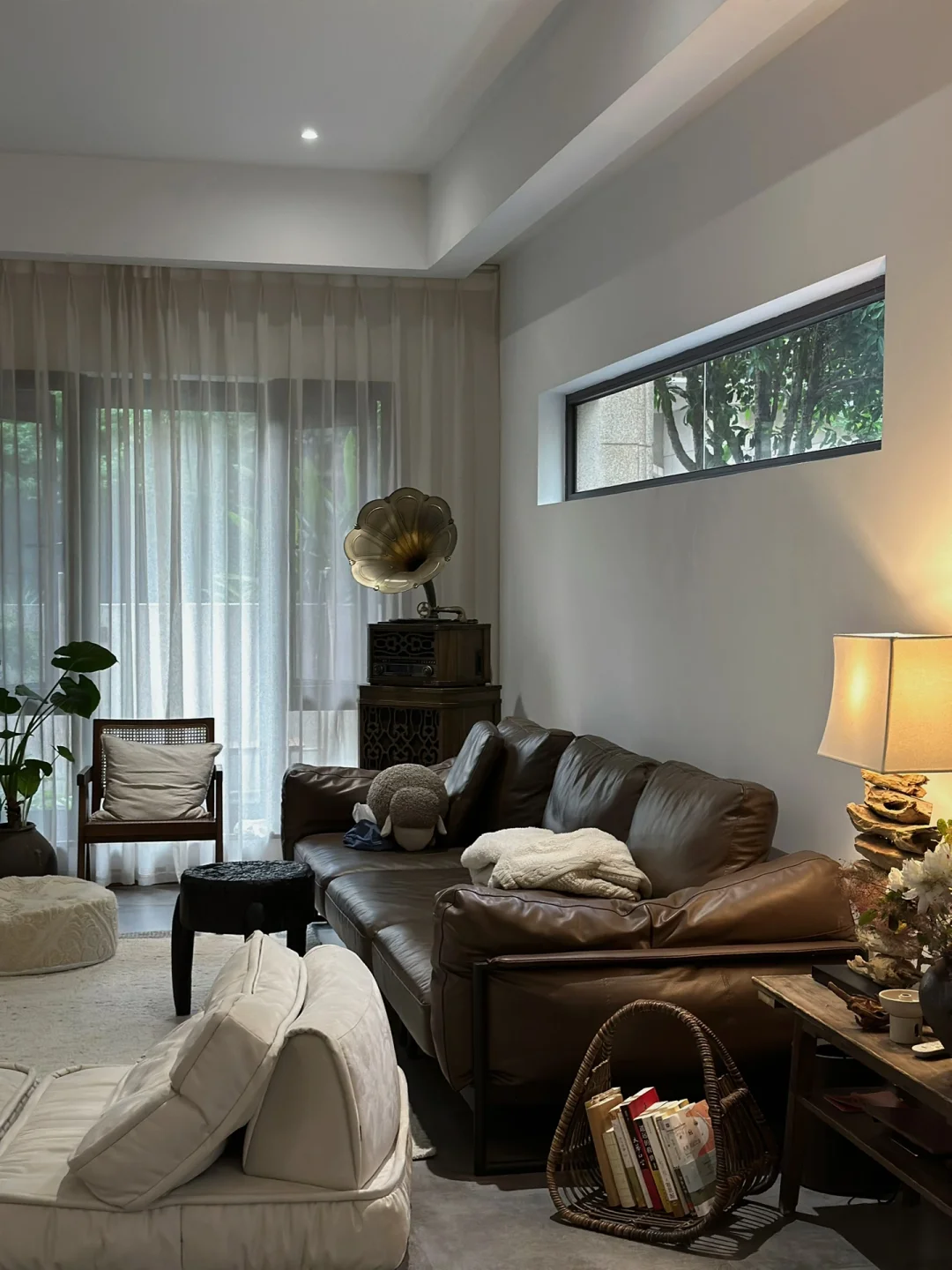 清新脱俗的中国水墨画都是低饱和度的,所以家里色调搭配要素雅。我家主色调是白+灰+棕,点缀少量黑色增添厚重感,一点深色能让整个空间更沉稳。