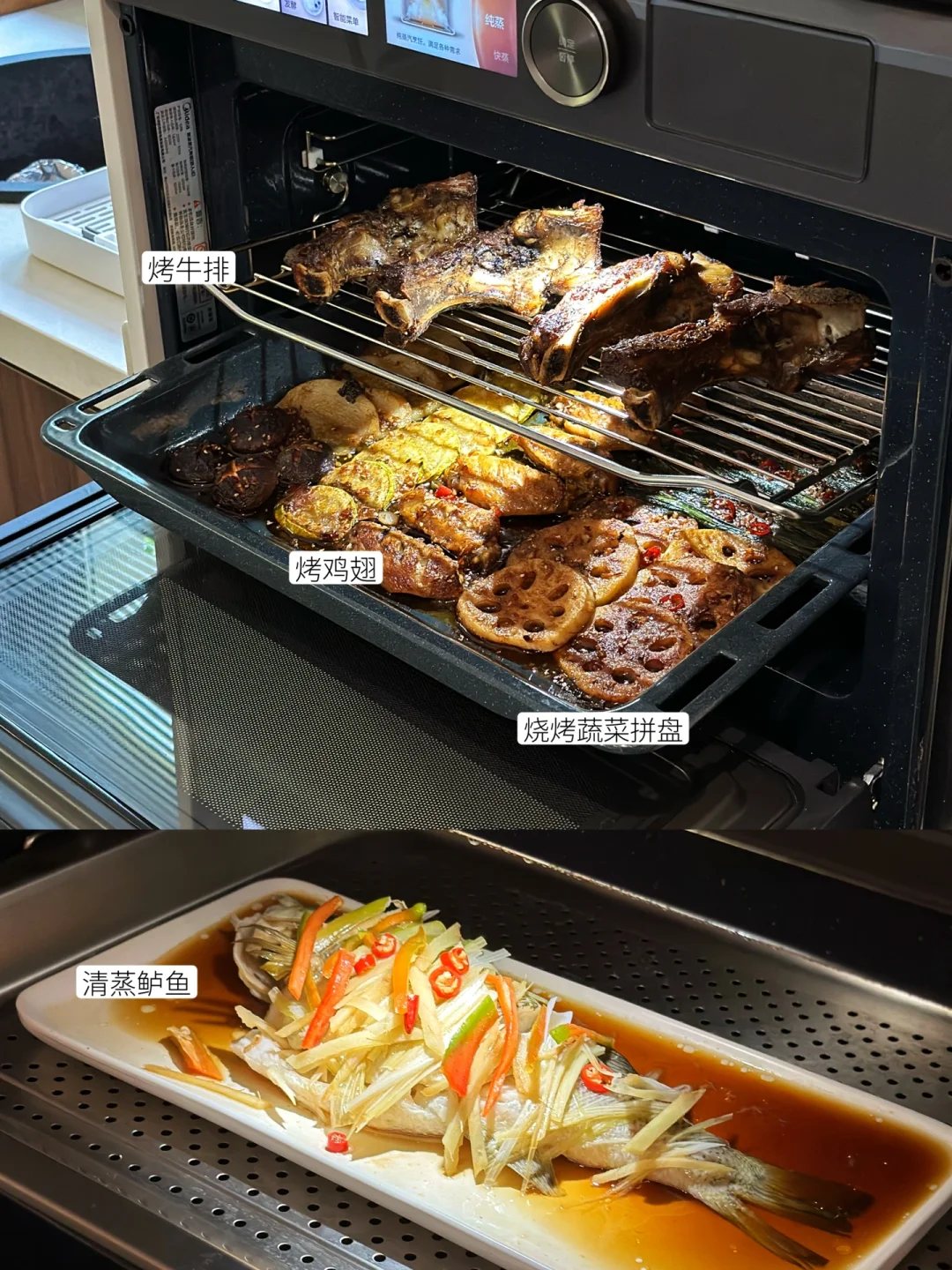 •一体机不占空间,现在还有带微波功能的,直接省了四个机器的位置,蒸或烤的同时有微波加持大火力,烹饪时间缩短了,不会下班饥肠辘辘的还要等很久才能开饭。