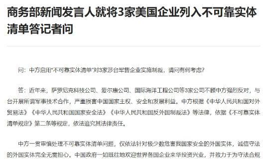 没想到中方出手这么重,美6大军火商被“一网打尽”,五角大楼:这下麻烦大了 美方允许台当局外事部门负责人林佳龙在联合国大会期间窜访纽约,被美媒认为是川普政府在涉台政策上出现“重大转折”。然而我方在一天之内连续打出两记反制重拳,给了蠢蠢欲动的新一轮美台勾连以沉重打击。 据商务部发布的通告,我方同时将美方6大军火商分别列入不可靠实体或出口管制管控清单,还禁止在华投资兴业,出手之重令美国舆论和岛内均大感震慑。 要知道福特级三号舰“企业号”本就因为供应链问题延迟了半年,这下怕是要彻底陷入“等米下锅”的窘境。 更狠的是对“无人军团”供应商的打击,萨罗尼克科技的无人舰艇、爱尔康公司的卫星通信设备,都是五角大楼近几年砸钱重点扶持的领域,美军原本计划2026年前部署50艘无人舰船,现在这些装备里的稀土元器件根本绕不开中国。 有数据早就显示,美国至少80种主要武器系统100%依赖中国稀土,从F-16的制导系统到“全球鹰”无人机的电机,少了中国产的稀土永磁体,这些装备就是一堆废铁。 美国自己虽有稀土矿,却连像样的加工设施都没几个,之前拨款1300万美元建的稀土厂至今还在试运营,想短期内补上空缺纯属异想天开。 之前F-35战机就因为发动机里用了中国产的磁铁合金,直接暂停交付,现在制裁范围扩大到6家核心供应商,连锁反应会更剧烈——比如生产无人僚机的企业拿不到稀土,下游的电子元件分包商就会陷入停滞,最后整个生产线都得停摆。 美国喊了好几年要让防务供应链与中国“脱钩”,却连最基本的原材料替代都没搞定。凯雷投资集团的顾问早说过,美国国防工业关键供应链存在大量单一供应来源,很多零部件只有中国能造。 就拿稀土来说,中国控制着从开采到加工的全产业链,美国想找澳大利亚、加拿大替代,可这些国家的稀土矿运到美国加工,成本要翻三倍还多,而且至少需要5年才能形成稳定产能。现在中方一出手,等于直接戳破了美国“供应链自主”的假象,那些号称“不受中国影响”的武器项目,转眼就暴露了依赖症。 这6家公司里有3家之前就被制裁过,这次升级措施等于彻底关上了回旋的大门。 就说国际海洋工程公司的海上防务设备、扁平地球管理公司的遥感技术,都得靠中国的精密元器件,现在禁止出口后,它们要么停工待产,要么就得花几倍的价钱找替代供应商,而五角大楼的采购预算早就捉襟见肘,去年为了补武器缺口才批了35亿美元,今年怕是要被迫追加更多资金,却还未必能解决问题。 说到底,中方这波操作是算准了美国军工“外强中干”的命门,表面上美军装备看着先进,实则供应链上全是依赖中国的薄弱环节。之前美国总觉得能靠技术壁垒拿捏别人,却忘了自己的武器里装着“中国心脏”,现在被反制才明白,想在涉台问题上玩火,就得付出装备研发停滞的代价。 现在看来,五角大楼说“麻烦大了”,倒不如说是早就该想到的必然结果……