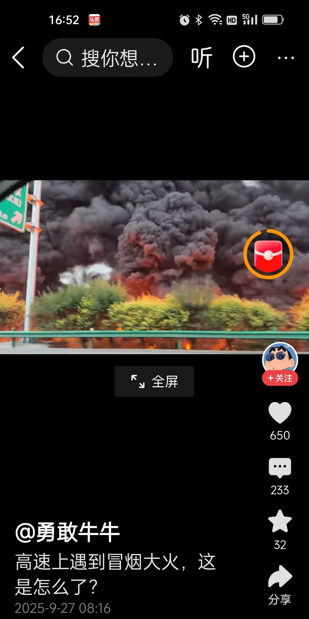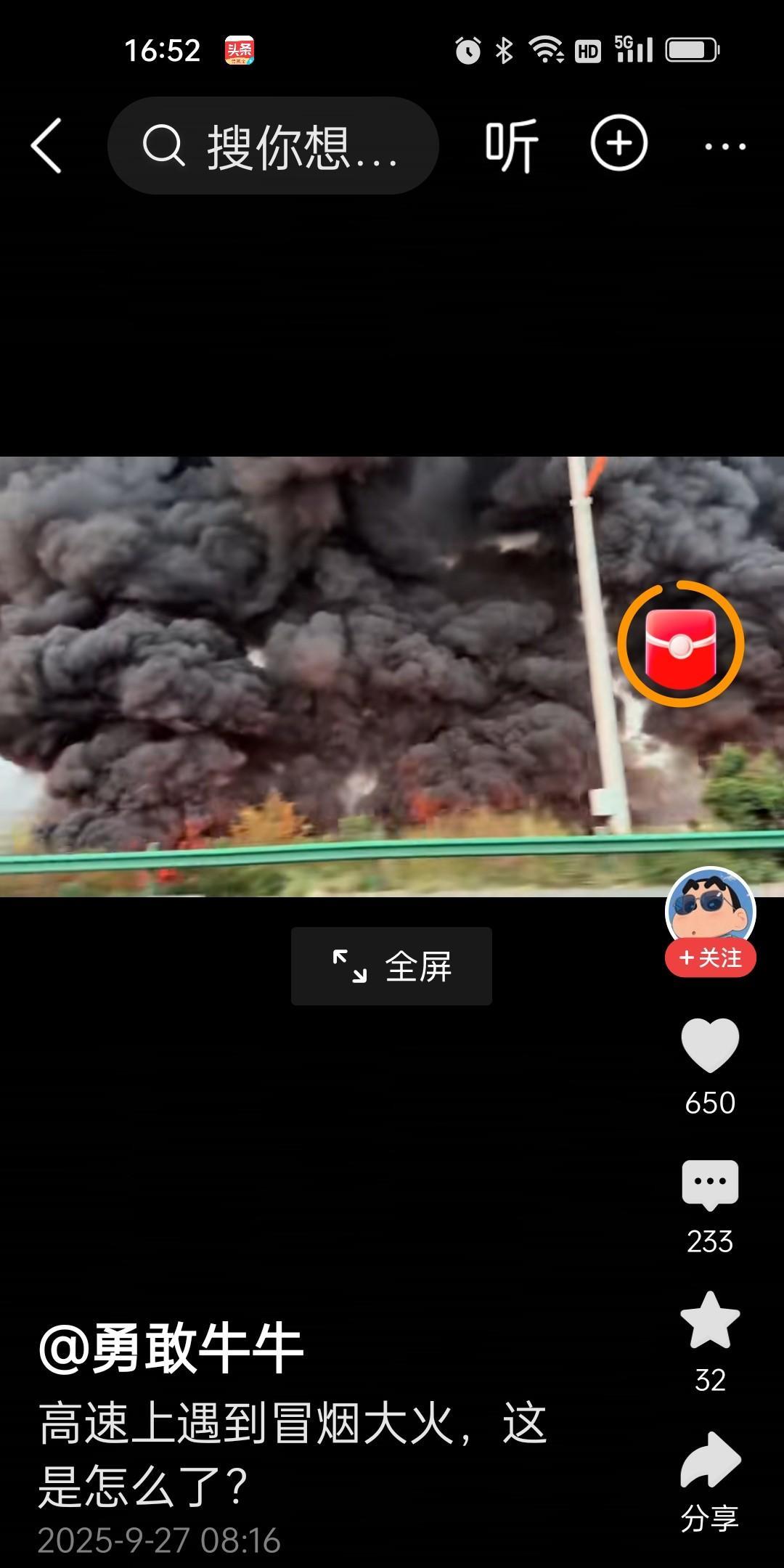 一段高速着火的视频,一边是浓烟滚滚,一边是几个青年人连呼,wocao,太牛B了!