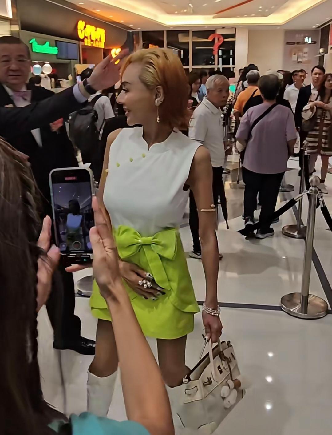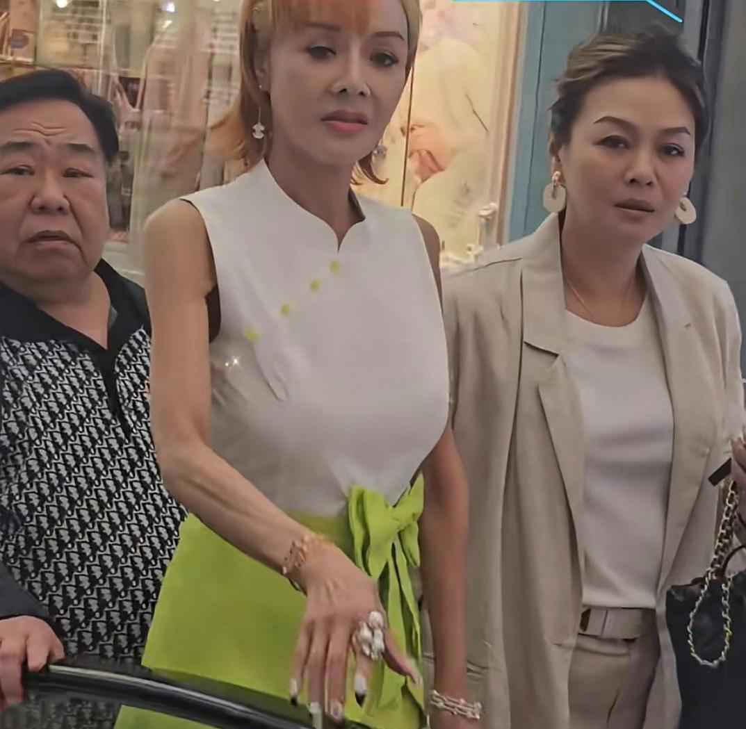59岁叶子楣在香港逛商场,她染了一头黄毛,打扮花枝招展一言难尽!因为年龄大了,她的肌肉已经萎缩,整个人看起来好干枯,她还是吃胖一点更好看啊!