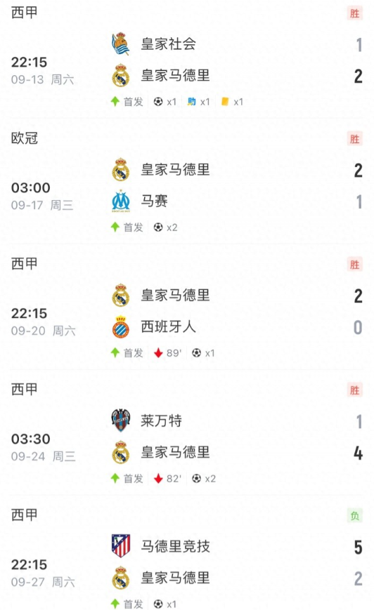 马德里德比皇马2-5不敌马竞后,镜头捕捉到姆巴佩直接走回更衣室,皇马球员仅阿森西奥、贡萨洛·加西亚和赫伊森3人留下向皇马球迷致意。 姆巴佩本场为皇马首开记录,他目前已经连续5场为皇马破门。