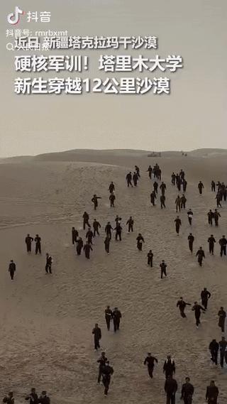 太硬核了!9月16日,新疆,塔里木大学新生军训,不站军姿,不踢正步,竟干了一件轰动全国的大事!塔大直接将8400名新生拉进塔克拉玛干沙漠军训,新生们头顶烈日脚踩滚烫沙地耗时3小时沙漠行军12公里,顺路还完成了匍匐前进、沙漠拉烟、敌袭模拟等实战课,塔大这一波操作火上了人民日报,老外看了也直呼硬核。网友:中国的孩子都应接受这样的训练。 新疆的塔里木大学突然火了,不是因为别的,就因为他们把8400名大一新生的开学第一课,直接搬进了号称“死亡之海”的塔克拉玛干沙漠。 这里没有绿草如茵的操场,也没有整齐划一的队列口号,取而代之的,是一场真刀真枪的12公里沙漠徒步。 教材就是沙子和汗水,它要教你的,是把“艰苦”这两个字,直接刻进身体里。 脚下的沙子表面温度有40度,烫得像铁板,每走一步,脚都会深深陷进流沙里,走起来特别费劲,鞋里很快灌满了沙,磨着脚踝,没多久袜子就破了,皮肤火辣辣地疼。 更狠的是,还要在这滚烫的沙地上练匍匐前进,那种灼痛感,让“吃苦”不再是一句空话,而是每个人都能尝到的真实滋味,虽然累到崩溃,但几乎所有人都觉得,这种体验值了。 讲台穿越了70多年的时空,学生们用脚步,跟历史来了一场对话,教官会在路上给大家讲故事。 70多年前,就在这片沙海里,解放军第一野战军的1803名官兵,为了解放和田,硬是靠双脚走了18天,整整1580里,那时候没水没粮,他们就啃树皮、喝骆驼尿。 听着“沙海老兵”的传奇,再看看自己脚下的路,很多快要坚持不住的女生都咬牙挺了过来。 这所学校一直讲“用胡杨精神育人”,而这一次,它让这种精神不再是墙上的标语,而是每个人亲身体验到的力量回响。 而在极限环境下,个人的脆弱被无限放大,集体的力量就凸显了出来,队伍里,男生会主动帮体力不支的女生背包,走得快的会回头拉一把掉队的同学,“加油”、“坚持住”的喊声此起彼伏,这声音比沙漠里的风更有力量。 这些来自五湖四海、最小才17岁的年轻人,就这样在沙漠这个大熔炉里,迅速从一个个独立的“我”,凝聚成了一个不可分割的“我们”。 这场被网友盛赞“硬核”的沙漠军训,已经远远超出了训练的范畴,它给所有人展示了一种教育的全新可能:精神的塑造远比形式的重复重要得多。 就像有人评论的,“这经历能记一辈子”,“真想重新高考去塔大”,当这8400名新生未来走出校园,这段被沙漠淬炼过的记忆,会像一棵种在他们心里的胡杨,给他们力量去面对人生路上的任何风沙。