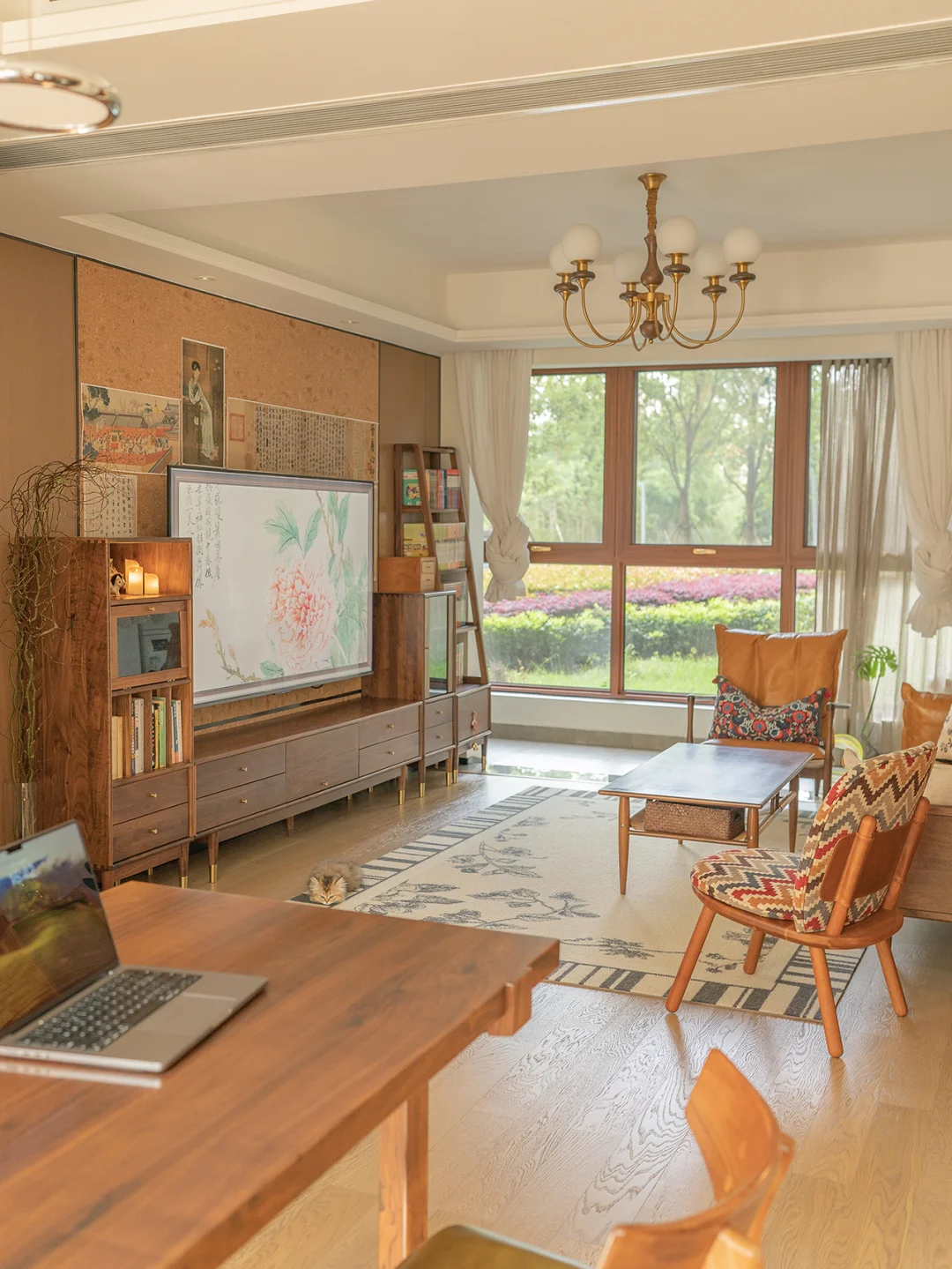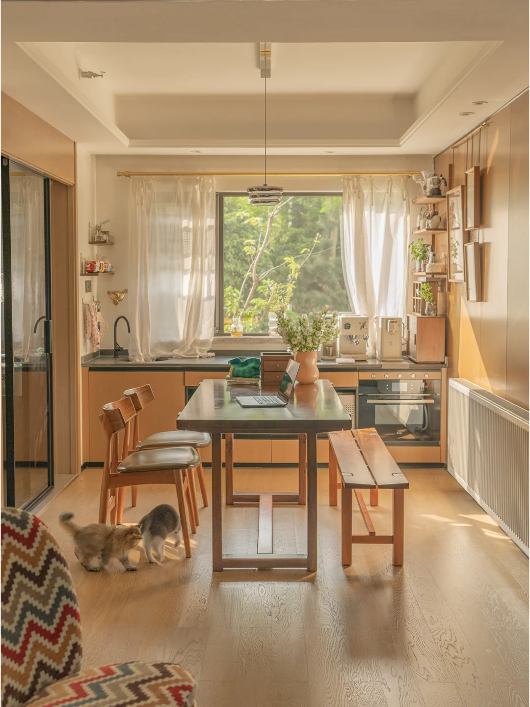 送完上学的女儿回来, 今天的家, 阳光温柔,猫猫可爱。 日子平凡而重复,也很幸福。 - 关于我的家 一楼, 建筑面积139m² 套内108平m²。 精装房, 在原有硬装底子上只做软装装修, 所以从收房到改造好就很快, 大约花了不到2个月时间, 含电器花费大约30w, 供参考。