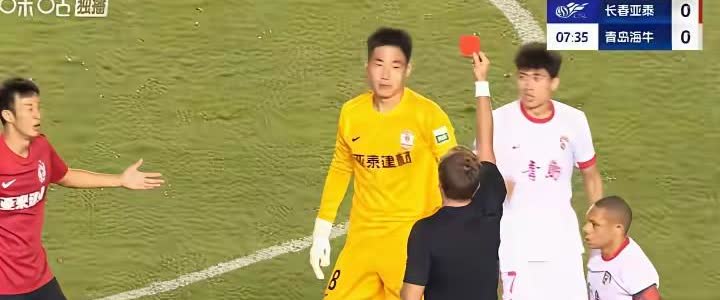 青岛海牛3分稳了,上岸的曙光让李霄鹏心里暖阳阳,长春亚泰门将王智峰第8分钟就申请