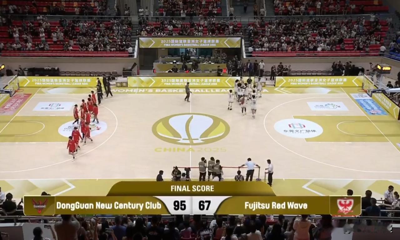 广东东莞新彤盛女篮强势击败日本富士通红浪女篮,勇夺亚洲女子篮球联赛冠军。去年赛事中,四川远达美乐女篮战胜这支日本队,斩获冠军。今年,广东东莞新彤盛荣膺国内联赛冠军,代表中国女篮俱乐部出战,同样成功闯进决赛,与对手展开奖杯争夺战。 广东东莞新彤盛首发阵容由杨氏姐妹、陈明伶以及双外援组成。本场比赛对于双方而言均是遭遇战,首节比赛伊始,双方战况胶着,分差始终未能拉开。首节结束时,广东东莞新彤盛以18:16领先。 次节开局,日本富士通红浪女篮连得4分,反超比分。广东东莞新彤盛命中3记三分,直接迫使对手叫了暂停。暂停归来,双方在防守端都全力以赴,广东东莞新彤盛凭借内外联动,逐渐扩大分差。半场结束,广东东莞新彤盛以41:27领先。 第三节,广东东莞新彤盛依旧依靠内外联动,牢牢掌握比赛主动权。尽管日本富士通红浪队主教练多次叫暂停,但效果不佳。三节战罢,广东东莞新彤盛以66:42的比分进一步扩大领先优势。 第四节,广东东莞新彤盛持续通过内外联动调动日本富士通红浪队,让对手疲于应对,比分不断被拉大,比赛胜负逐渐失去悬念。全场比赛结束,广东东莞新彤盛以95:67的大比分狂胜对手,将冠军奖杯继续留在中国。