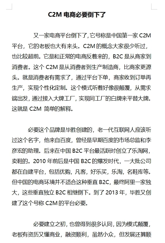 又一个电商平台倒下了,国内首个C2M模式的商城必要,你听过吗?