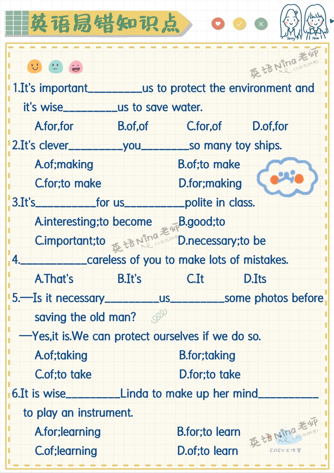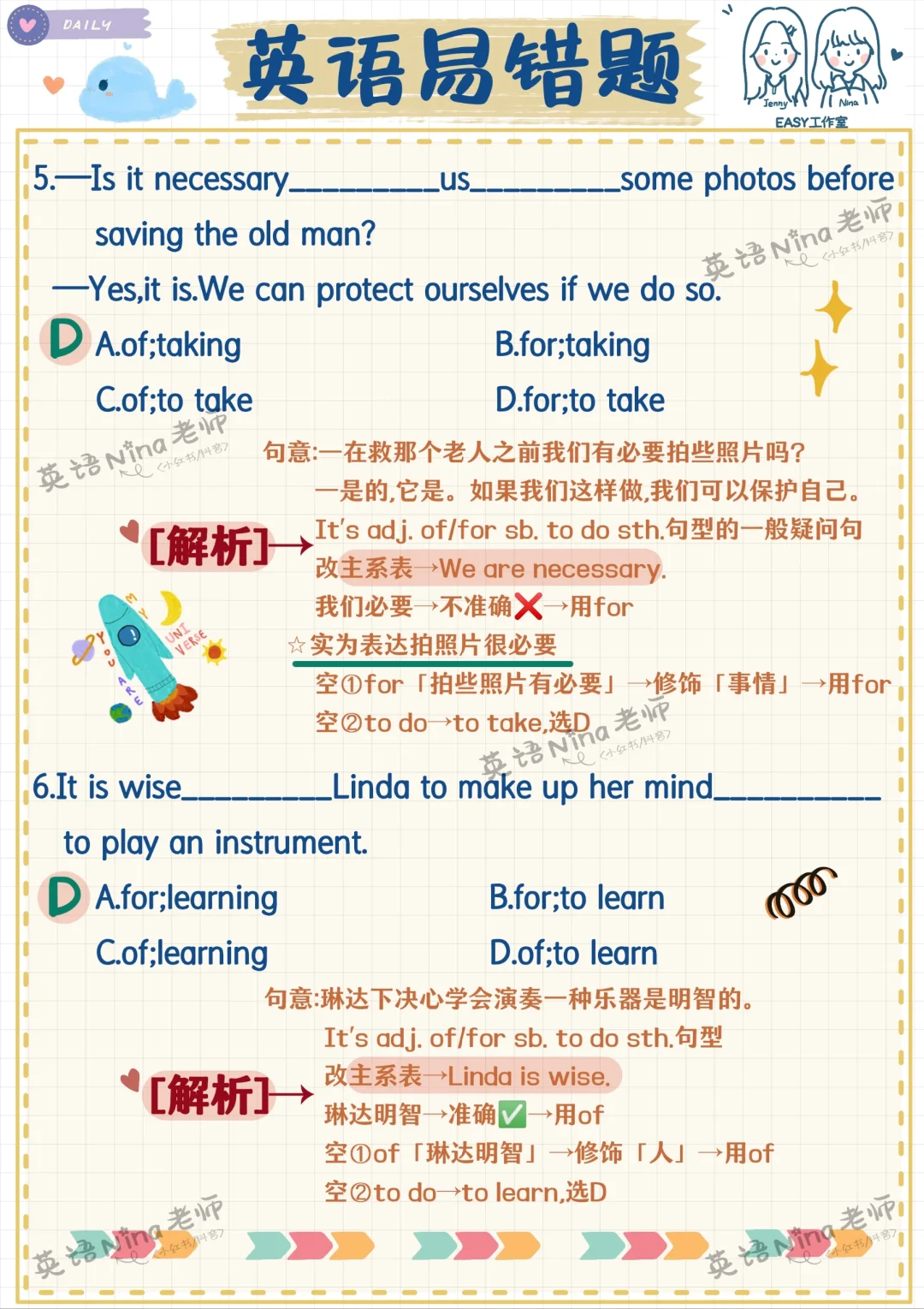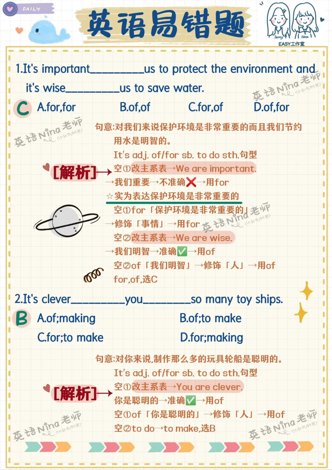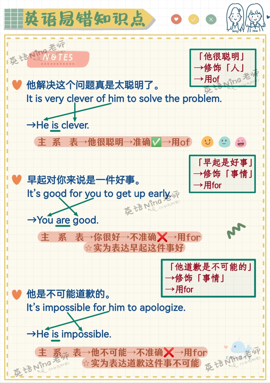 it's+形容词+of/for+某人+to do句型 何时of何时for❔ 👀看笔记👀 🌈不一样的学习笔记 🙂带着好心情去学习 💪事半功倍,行动起来吧❗ 🏃♀️坚持学起来!追随光,成为光!