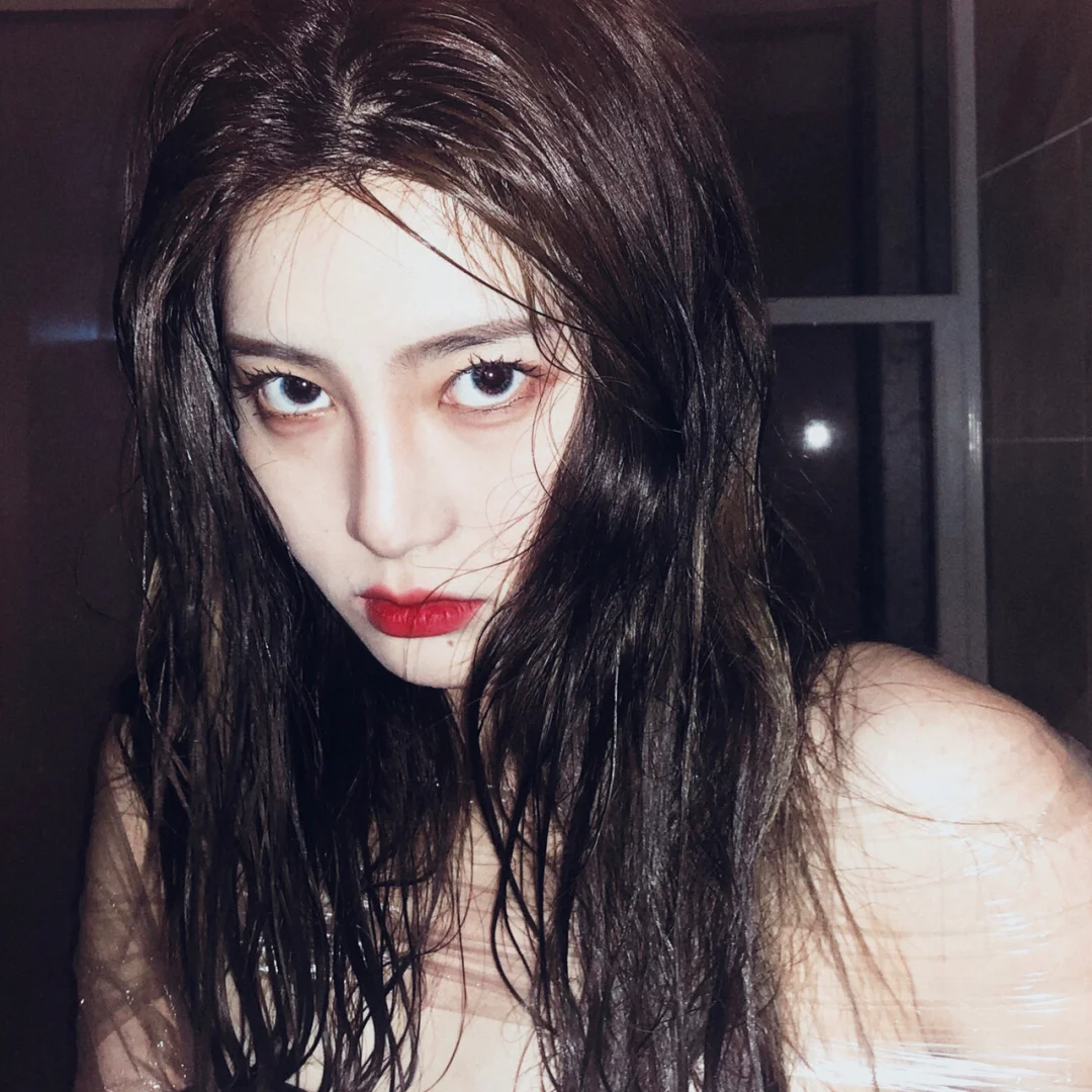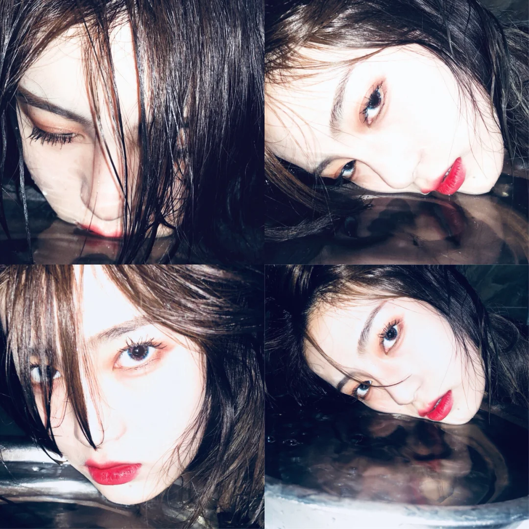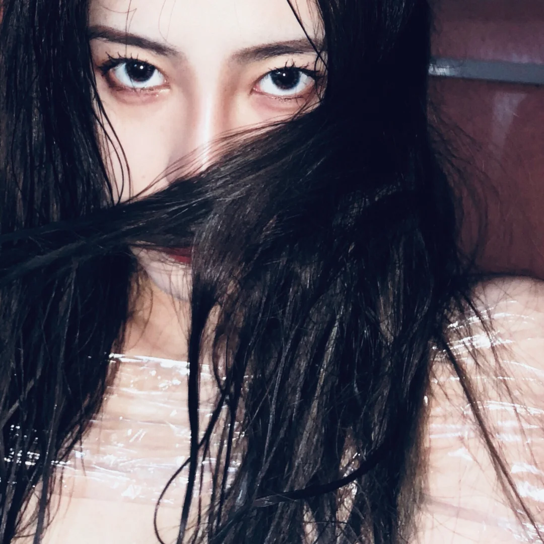 接下来1️⃣把头发弄湿,这个度一定要掌握好!湿表面的头发就好,才有高级感。2️⃣利用保鲜膜把保鲜膜放在嘴巴下面,脸左右上下旁边。(本来是想仿照上那种,在保鲜膜上洒水然后隔着保鲜膜拍的,后来发现太容易有雾气,很难拍好。大家可以试试哪种效果好拍哪种滴)3️⃣把保鲜膜在肩膀上缠一圈,照片出来会有种没穿衣服的感觉(其实穿了抹胸啦😂)4️⃣眼神一定要丧丧丧,就是现在很流行的厌世脸!露出下眼白最好,所以要选择小直径con噢~