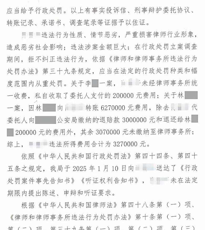 这律师胆儿也忒肥!湖南长沙某律师不经律所,私自接受委托并私自以自已个人账户收费647万元,违反刑事官司不准风险代理的规定要求!也给国家造成了税收损失。被停止执业六个月,没收违法所得327万元,您说值不值? 律师是最懂法律的,不能执法犯法,人不能钻到钱眼里!