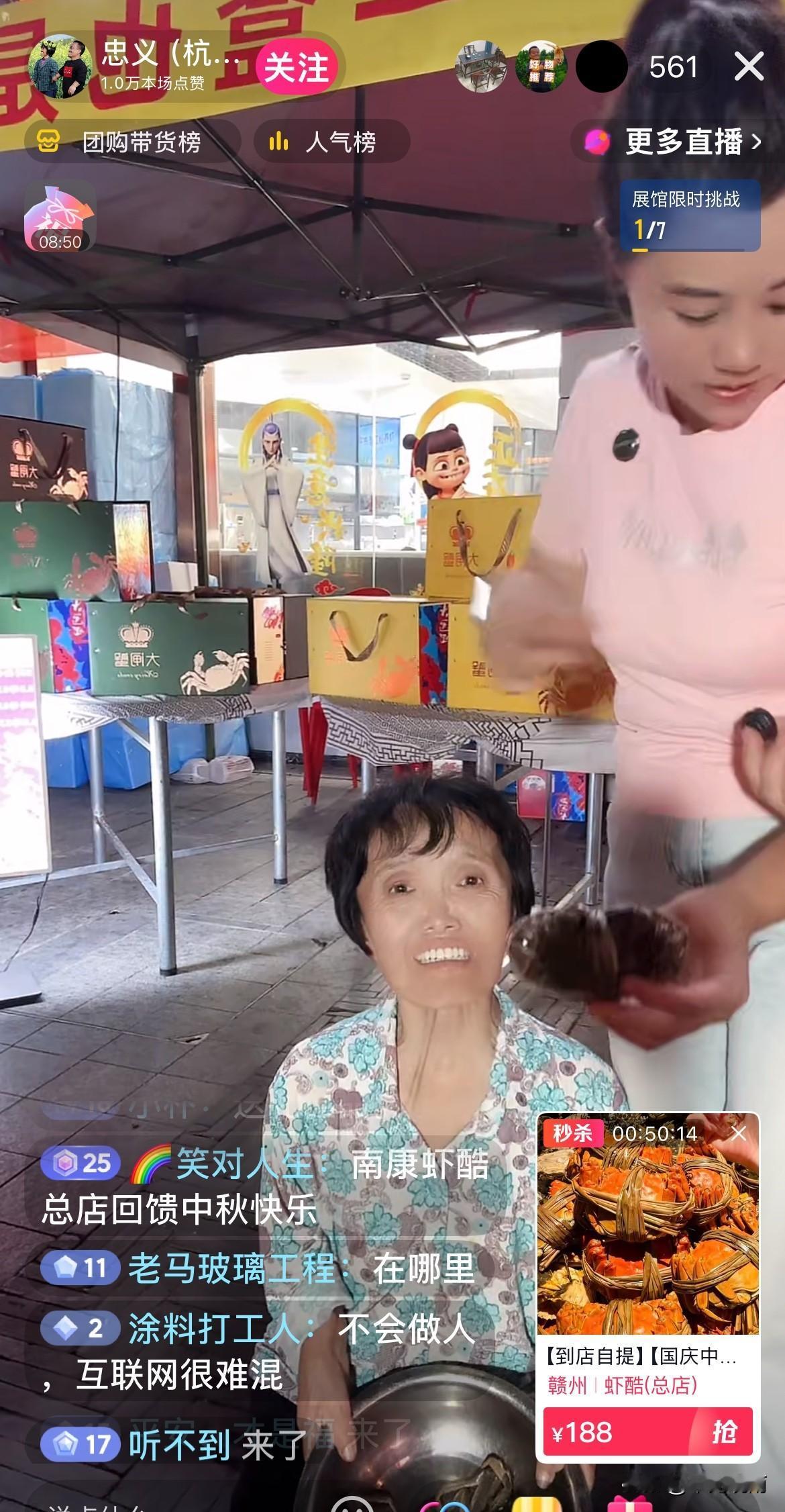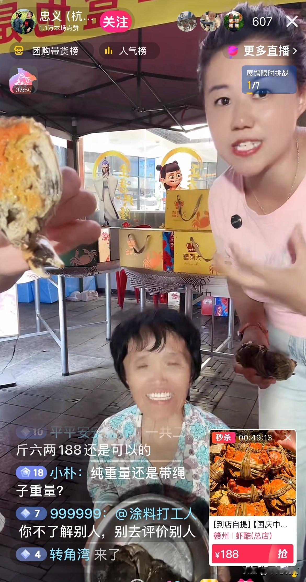 忠义阳阳上午直播售卖游乐园门票,晚上又开启了大闸蟹的售卖,甚至忠义还把母亲请到直