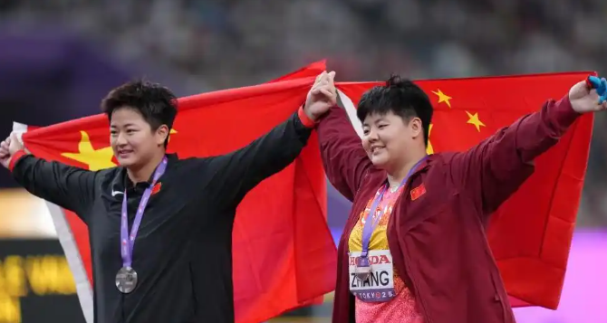1、女子链球:中国选手赵杰和张家乐分获银牌和铜牌,美国选手获得第五名。