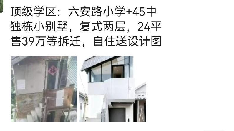 合肥市区内顶级学区的房子,两层小楼,已经旧的不像样了,现在卖39万,这个价格的确不贵,还自带设计效果图了,但是肯定也是不敢住了,说等拆迁。这种房子竟然还没拆。 这个是可能会拆迁,但是肯定不是最近,最近的话,房东也不会卖。