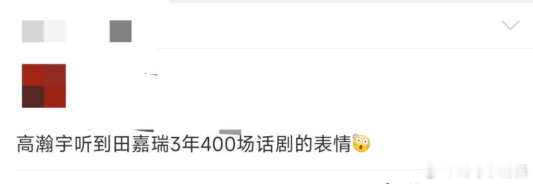高瀚宇听到田嘉瑞3年400场话剧的表情 高瀚宇的表情管理在这一刻“失效”了!采访中听到田嘉瑞“3年400场话剧”,他当场瞪大双眼,跟着全员惊叹,这反应太真实,也侧面印证了小田的拼!