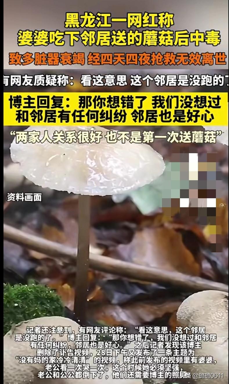咱就说这事儿也太让人揪心了!黑龙江一网红婆婆吃了邻居送的蘑菇,结果中毒多脏器衰竭