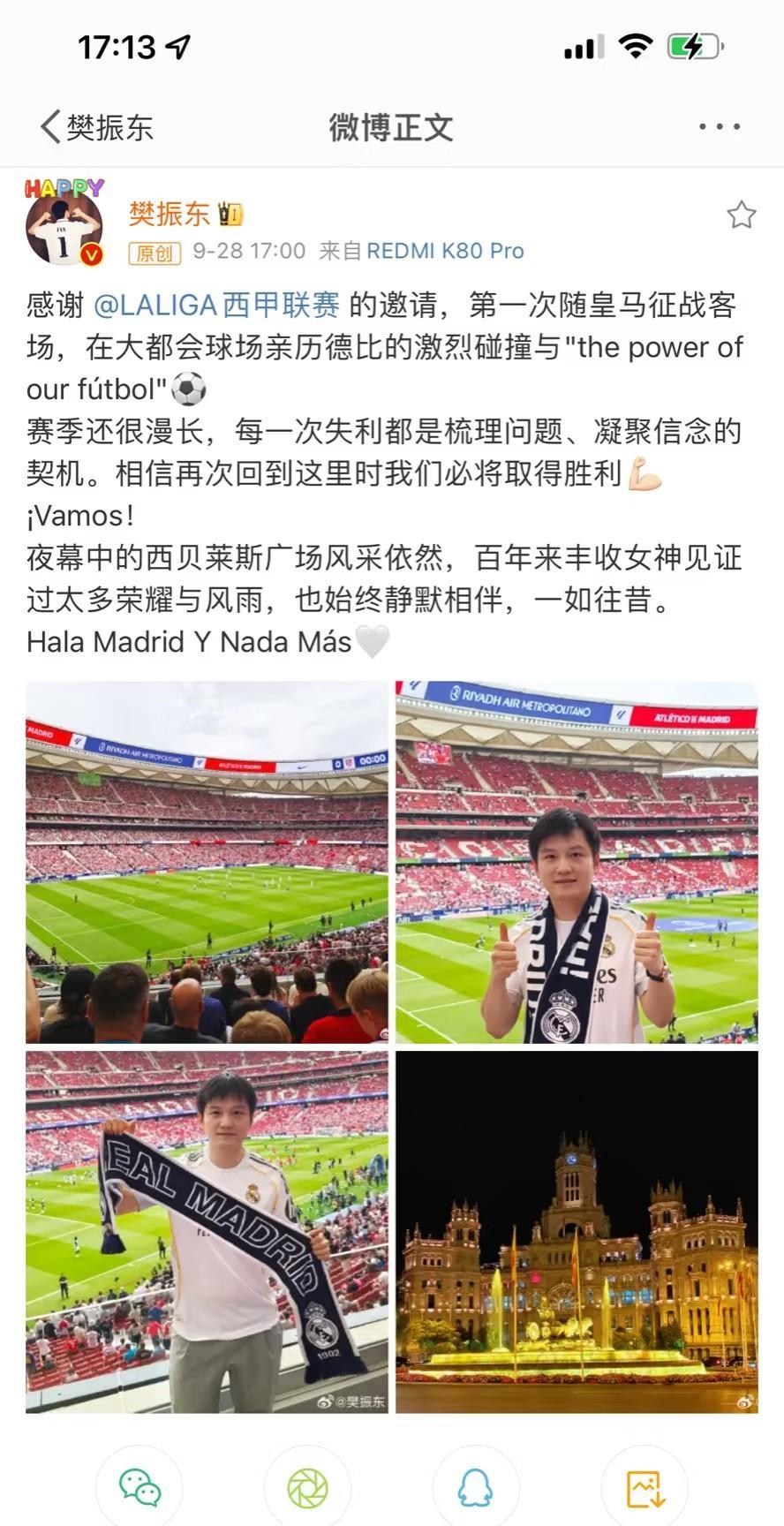#樊振东学德语会面临哪些挑战# 西甲动作真快,上次说在邀约了,这次就成了!怎么会有这么幸福的人,一边做着喜爱的工作,一边做着喜爱的事情。 他还真适合去做足球解说,这文采!让我想到了贺炜,一个带着激情热爱的足球主持人! 非常好,足球赛,小作文,观众席的纪念照,知道你在好好生活就行了! #西甲皇马#