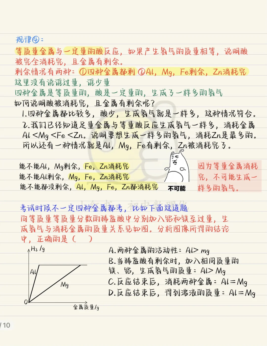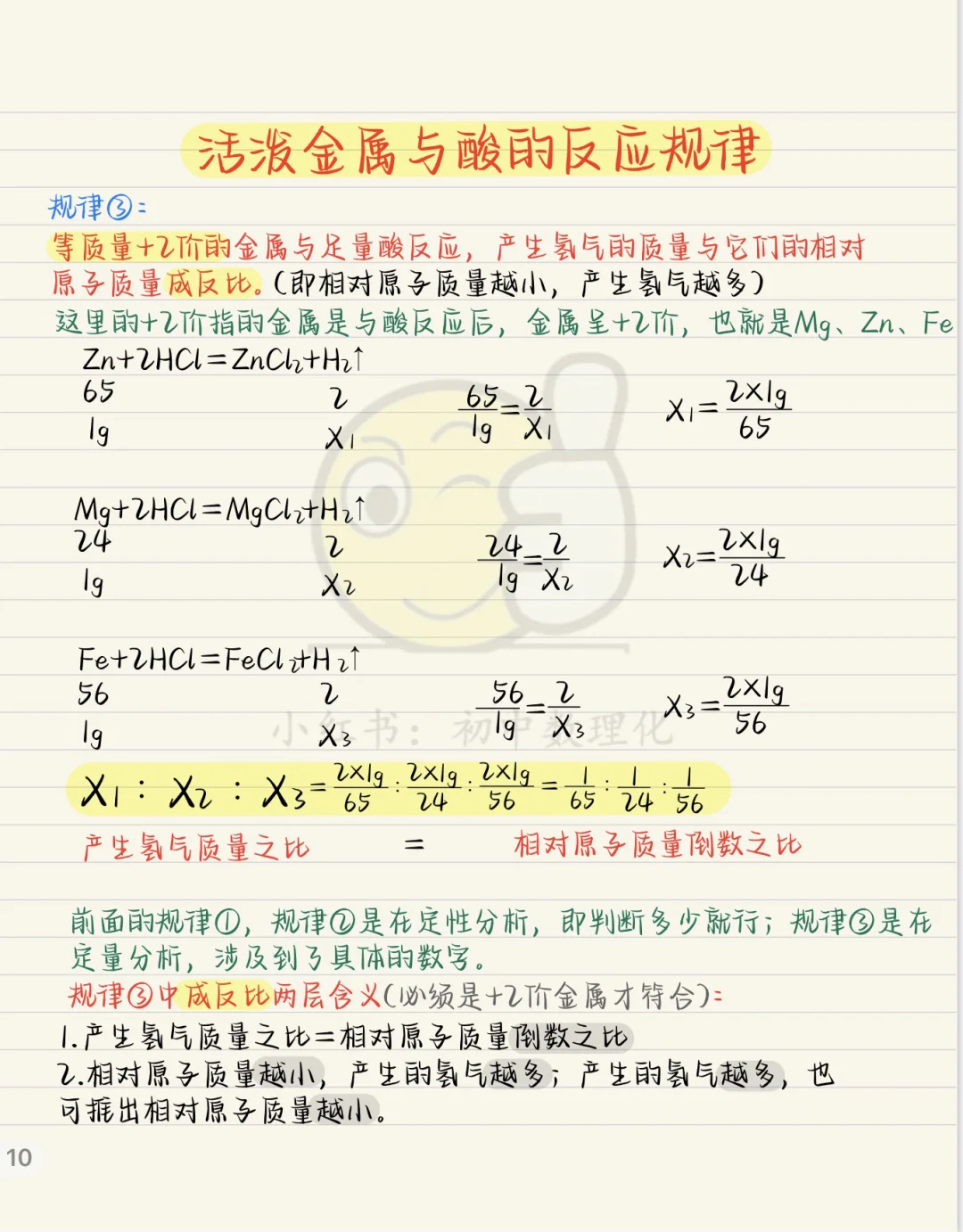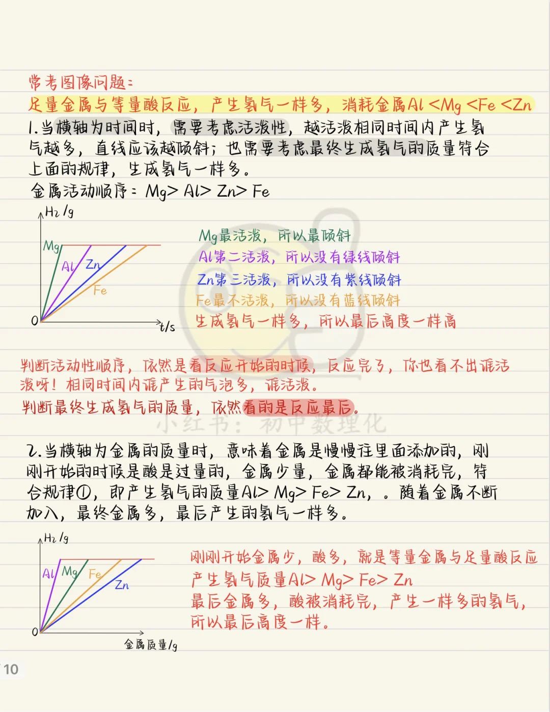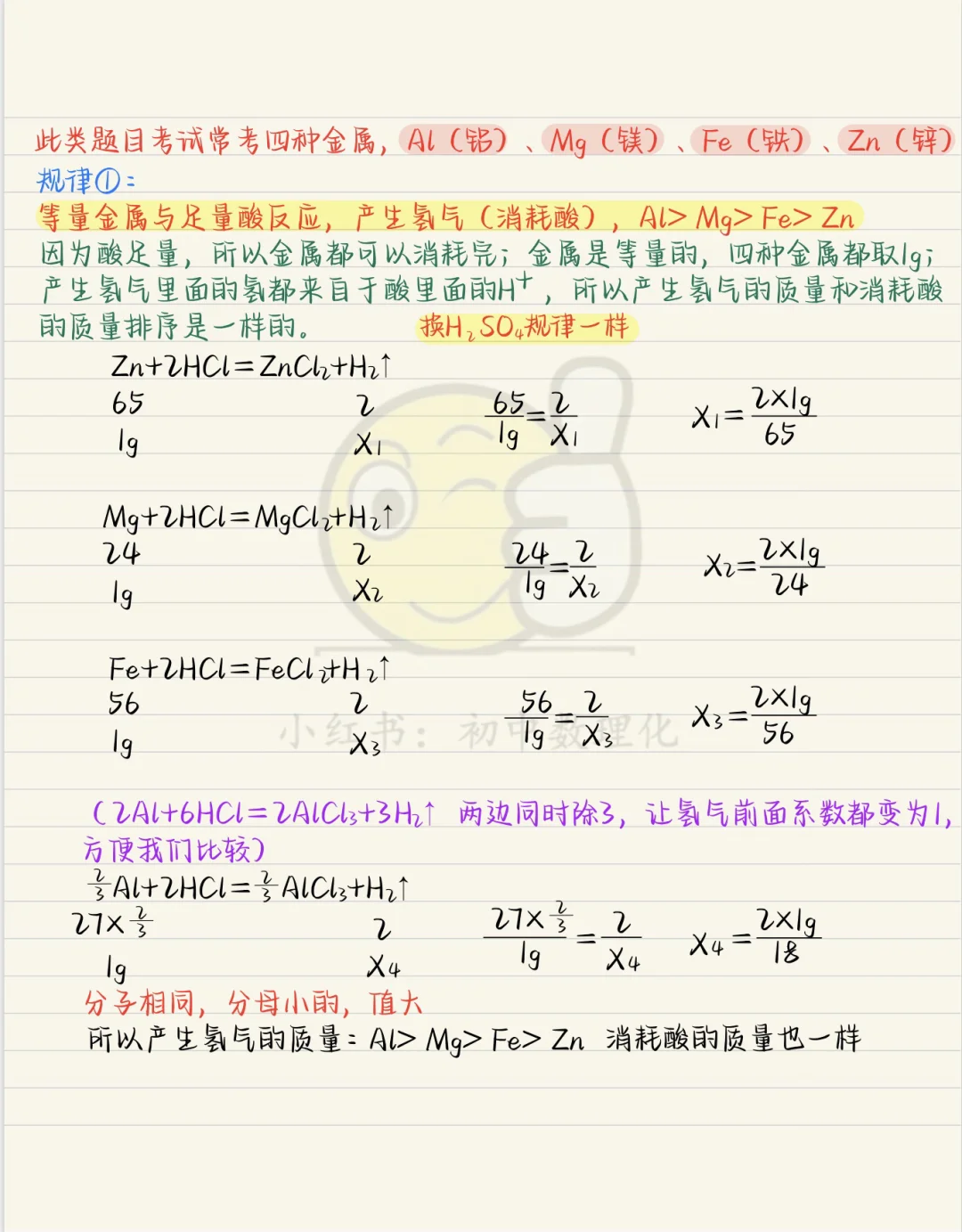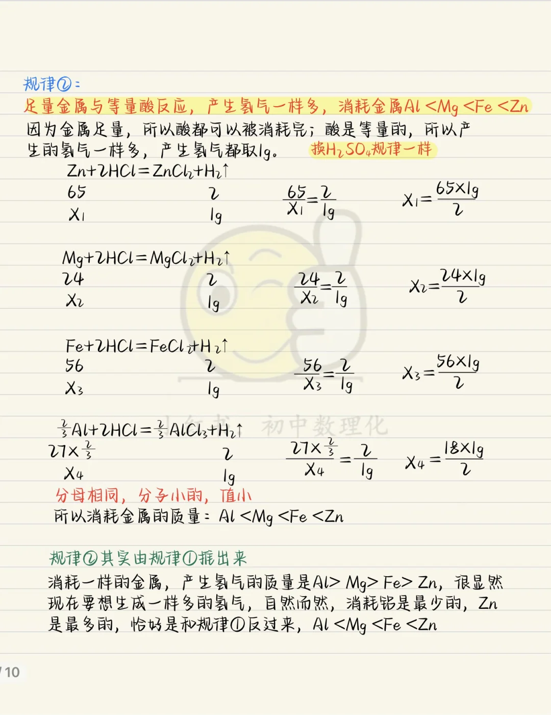活泼金属与酸反应规律(1):等量金属与足量酸
