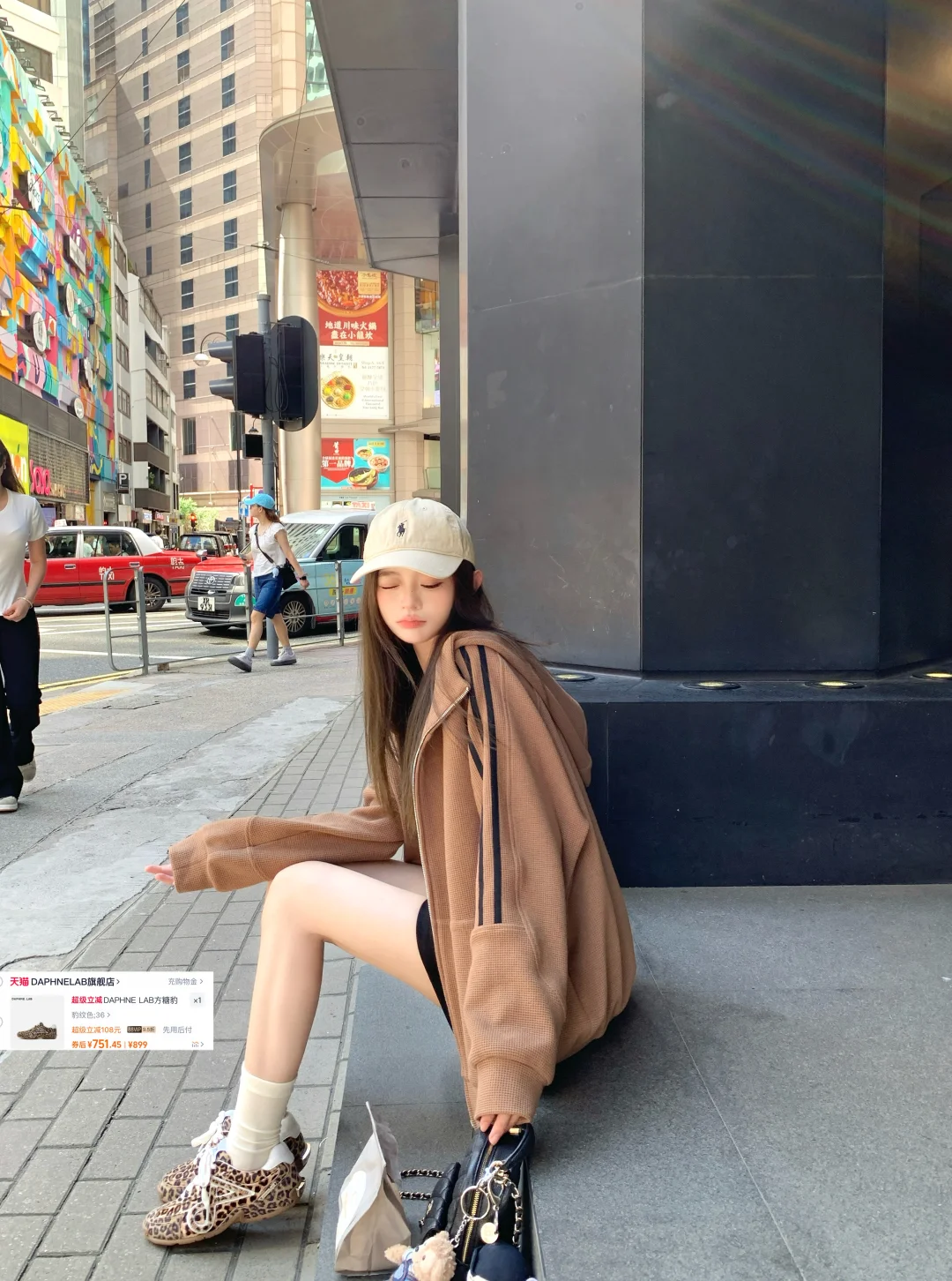 黑色紧身裤搭小翻领运动外套再配平底鞋这搭配堪称日常松弛感穿搭的最佳!黑