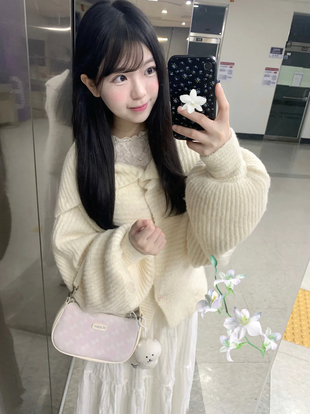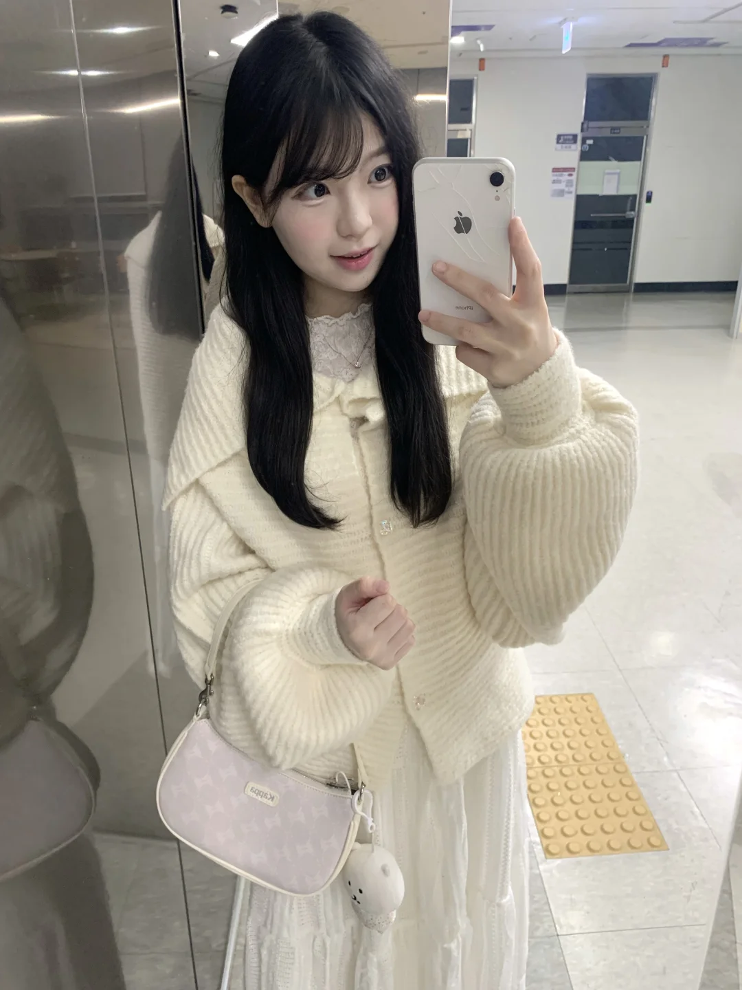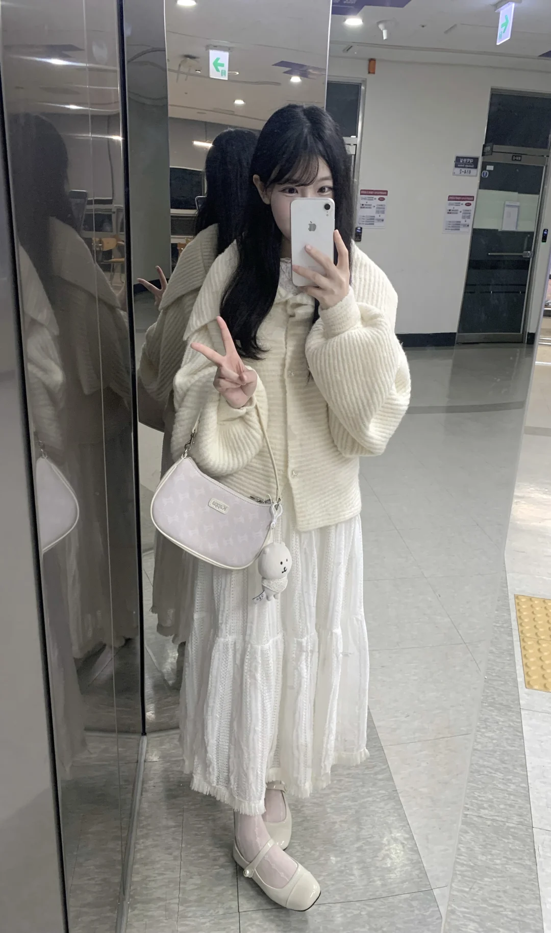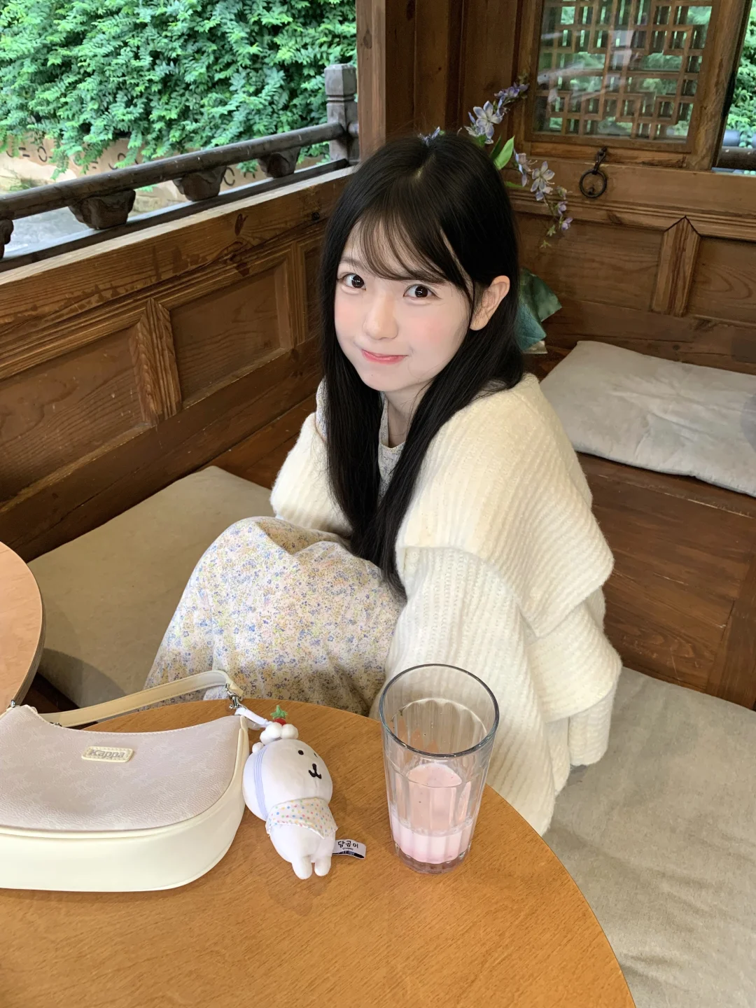 初秋的早晨在韩屋附近散散步好舒服~🍂 白色毛衣搭配碎花裙好温柔[喝奶茶R]