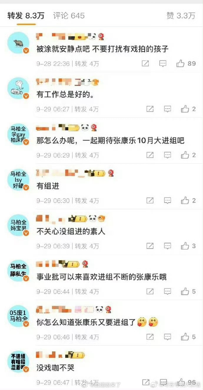 丞磊和曾舜晞两家怎么在互相排字?目前丞磊家在转发区前排