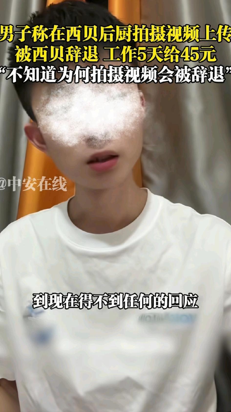 干了5天,只给45块钱,西贝又摊上事了!就在今天,一男子在网络上发布视频,他说,