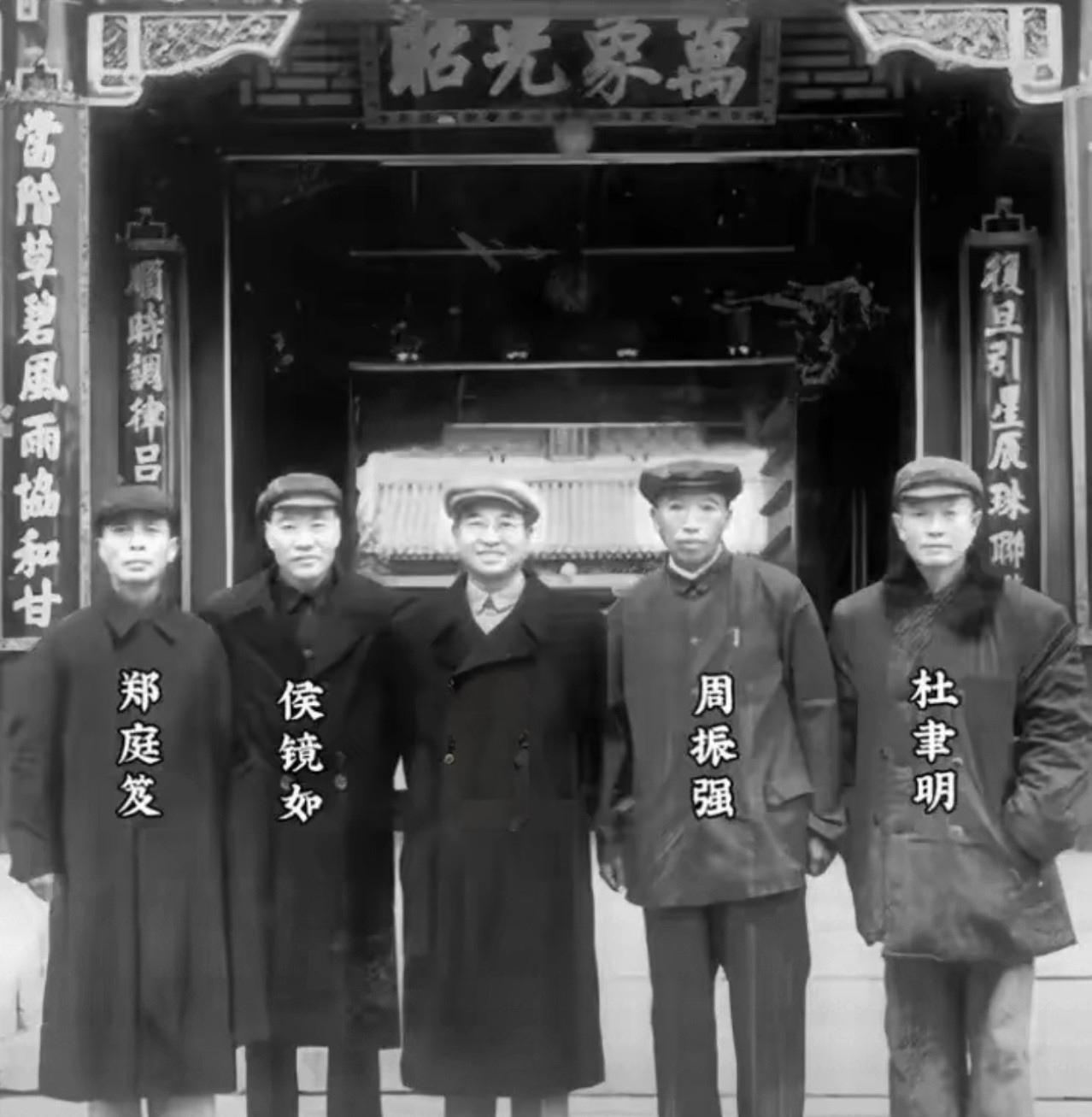 这张照片记录了陈赓大将与郑庭笈、侯镜如、周振强、杜聿明等黄埔同窗的特殊相逢。曾经