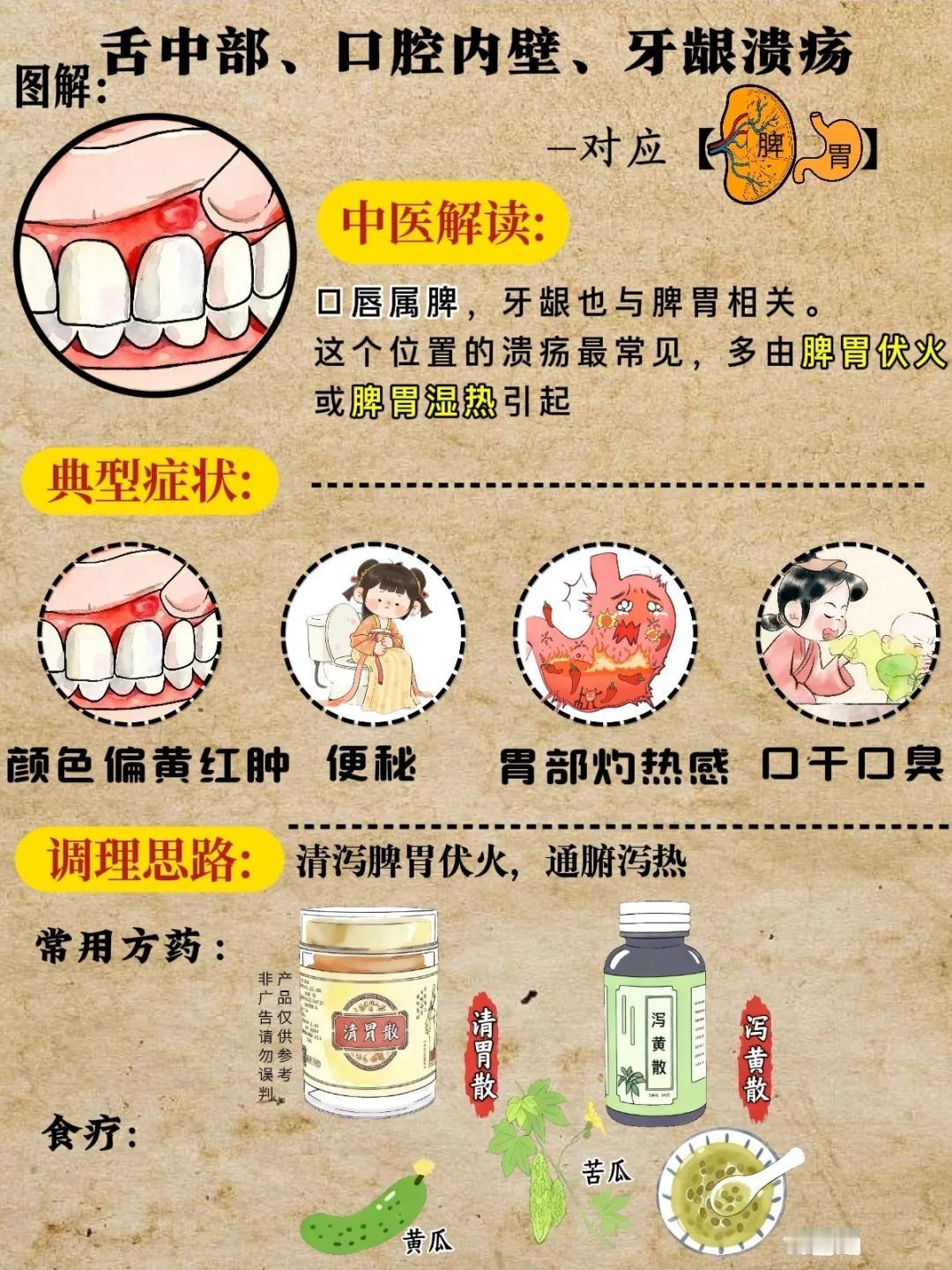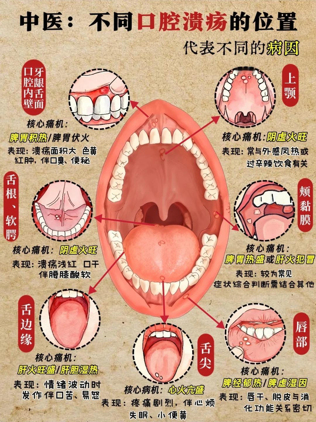 中医:不同口腔溃疡的位置代表不同的病因❗