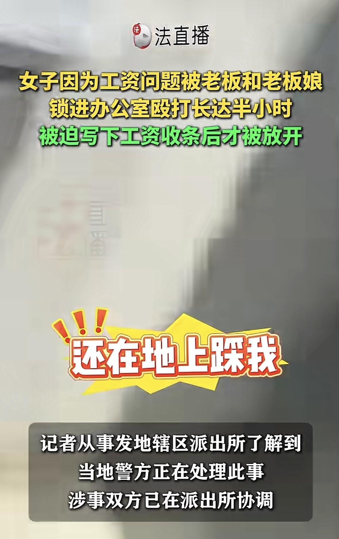 内蒙古鄂尔多斯,女子管老板要工资时双方起了口角,老板一怒之下叫上老板娘,把女子锁进办公室,拽她头发打她,还把她摁在地上踩,揍了半个小时后,两口子逼着她写了张工资收条,女子扛不住妥协了,写完才得以脱身,事后,双方被叫到派出所进行了调解。 最近,一女子最近因为工资纠纷,被老板两口子锁在办公室里揍了半个钟头。 女子在短视频平台上发了自己受伤的照片和哭喊的视频,看得人心里直发毛。 女子说,那天老板娘拽着她头发往地上摁,老板也跟着动手,踩得她胳膊腿都是青一块紫一块的。 为啥呢?就因为工资没谈拢。 她本来是去要工钱的,结果被反锁在屋里遭了顿毒打。最后实在扛不住了,只好写了张工资收条才被放出来。 她现在提起这事儿就掉眼泪,说当时疼得连喊救命的气儿都没有。 有记者翻到她9月28号发的视频,镜头里她在一间屋子里哭得撕心裂肺,声音都哑了。 她还晒出多张照片,胳膊上全是淤青,头发乱得像鸡窝,看着就让人心疼。 可当记者9月29号想找她细问时,电话打过去却没人接,发消息也没回音。 事发地派出所的负责人说,现在双方都在派出所里接受调查。 警方正在查这事儿到底咋回事,老板两口子到底动没动手,得看监控、问证人,不能光听一面之词。目前先把两拨人叫到一块儿协商,看看能不能调解。 不过这事儿闹成这样,调解怕是没那么容易。 女子心里现在肯定是又委屈又害怕。本来打工挣点钱养家糊口,谁成想遇上这种事儿。她可能每晚都睡不着,一闭眼就想起被拽头发、被踩的疼。 她把自己遭遇说出来,又很怕被老板背地里报复,可要是不说吧,这口气又咽不下去,身体上的伤还疼着,心里更疼。 老板两口子肯定也没想到女子竟然把这事曝光了,心里指定很后悔,要是真坐实了打人,那可就不是赔钱能了的事儿了。 现在可好,生意受影响不说,还得面对警方的调查和可能的处罚。要是调解不成,说不定还得吃官司。 女子现在最盼的就是能讨个公道,让打人的人受到惩罚,自己也能拿到应得的工资和赔偿。 这事儿啊,真是让人唏嘘,打工挣钱不容易,可更不容易的是遇到这种糟心事儿。希望警方能查个水落石出,别让老实人受了委屈。 这事一出,大家伙也是议论纷纷,有人说,想问下,她身上的伤是她自己摔自己抓自己打的么,这么明显的事为什么一遇到事情就是说去调查? 办公室监控可能关了,公司监控也可能烂了,但周围监控起码可以证明员工进去是什么样,出来的时候是什么样,派出所不难查清楚,刑事案件不存在调解。 如报导属实,欧打她人,致轻伤,按治安管理处罚法相关条款,是要治安处罚,行政拘留的!如司法签定伤情严重到一定等级,就构成刑事案件!就要刑拘并移送检方至法院!无论哪种情况,限制人身自由,欧打他人,都不是协调或调解范畴内的!应按法律法规执行,任何人都不能凌驾于法律之上!包含执法者! 不管打没打,这公司老板已经违法了。因为他把员工锁办公室里,限制人身自由。涉嫌非法拘禁罪 恶意欠薪罪,是典型的刑事案件,为什么要协商呢? 那么,从法律角度,怎么看待女子的遭遇? 女子因工资纠纷被老板和老板娘锁在办公室内殴打长达半小时,期间被拽头发、推倒踩踏,并被迫写下工资收条后才获释放。 女子发布的身体受伤照片、哭喊视频及被迫写收条的细节,均能证明殴打事实存在。 警方在协调过程中,应首先依据该法条对涉事双方进行治安调解,如果调解不成或情节恶劣,可直接对打人者作出拘留、罚款的行政处罚。 非法拘禁与殴打行为可能同时触发刑事追责和治安处罚,警方需根据伤情鉴定结果决定是否立案侦查。 对于这件事,你怎么看? 信源:红星新闻 2025-9-29