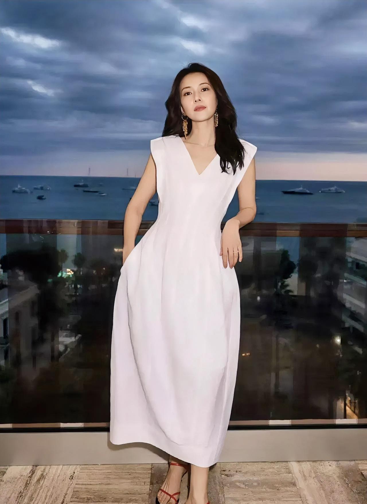 高圆圆,白裙子好美,特别是那脚上的精致红凉鞋,一看就很凉快