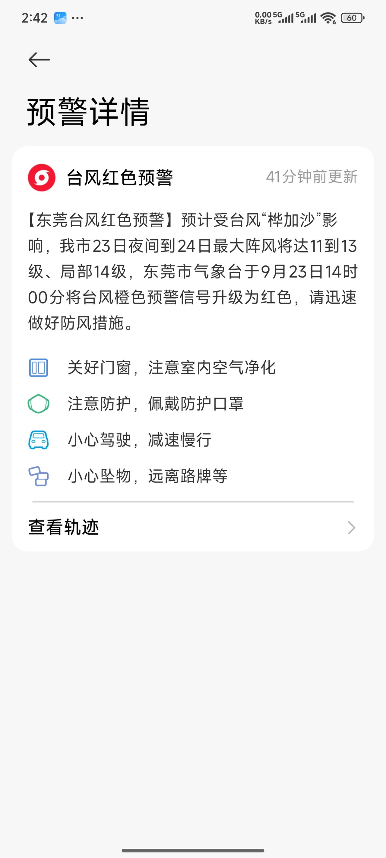 台风最新消息,预警等级已经提到了最高等级:红色预警! 看着这庞大的气旋,压迫感迎面而来。目前厦门和汕尾已经和台风有接触,也不知道到底他们那边现在是个什么情况。 东莞目前还有太阳,虽然感觉这个太阳有点白惨惨的。 尽管现在看来没什么动静,我们公司还是响应了上面的号召,已经放假让我们回去了,明天看情况再决定放不放假。台风