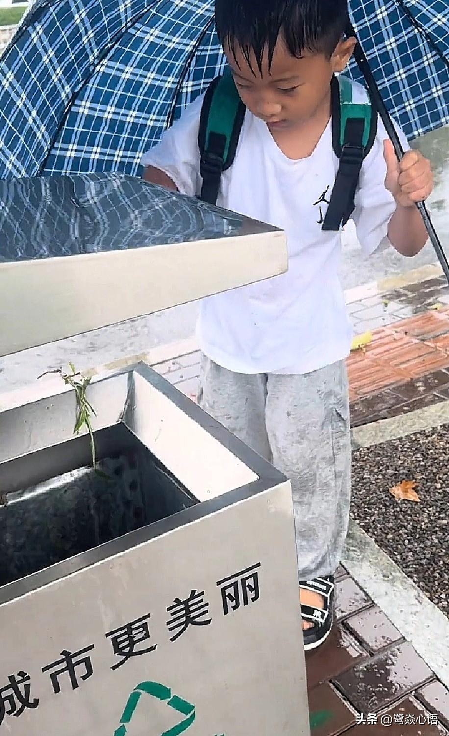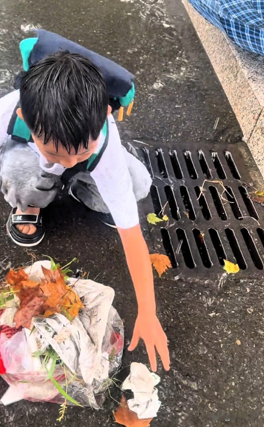 真是被这小朋友的一幕感动到了! 近日,山东临沂一则视频,一位小朋友在放学回家路上,由于刚下过大雨,路上都是积水,小朋友撑着雨伞,行走在有积水的路上。 当小朋友路过有下水道路面时,看到有好多垃圾堵住了下水道口 ,毫不犹豫放下雨伞,用手把垃圾,塑料袋,树叶都给掏到下水道井盖边上,然后装入塑料袋中,顺手把刚刚掏的垃圾丢人附近垃圾桶里! 网友看了,直夸这孩子懂事! 有大爱!这么小小年纪就有如此善心!谁家的父母教出如此优秀的孩子呀!暴雨中的好心人