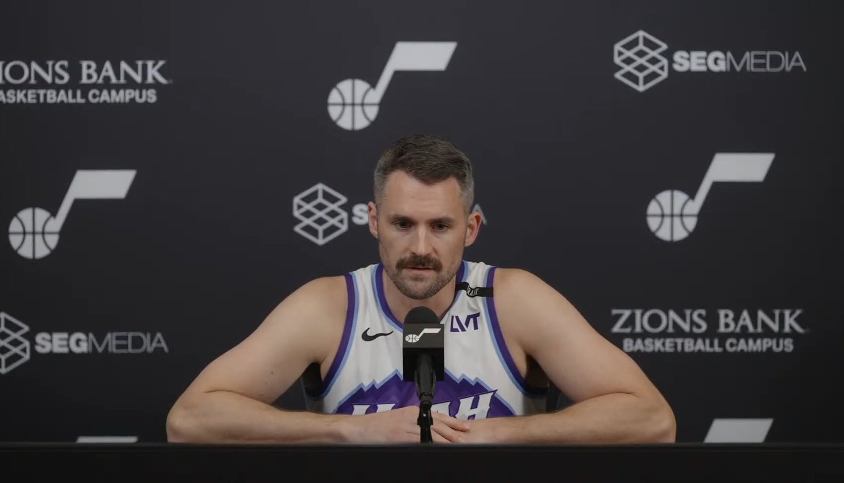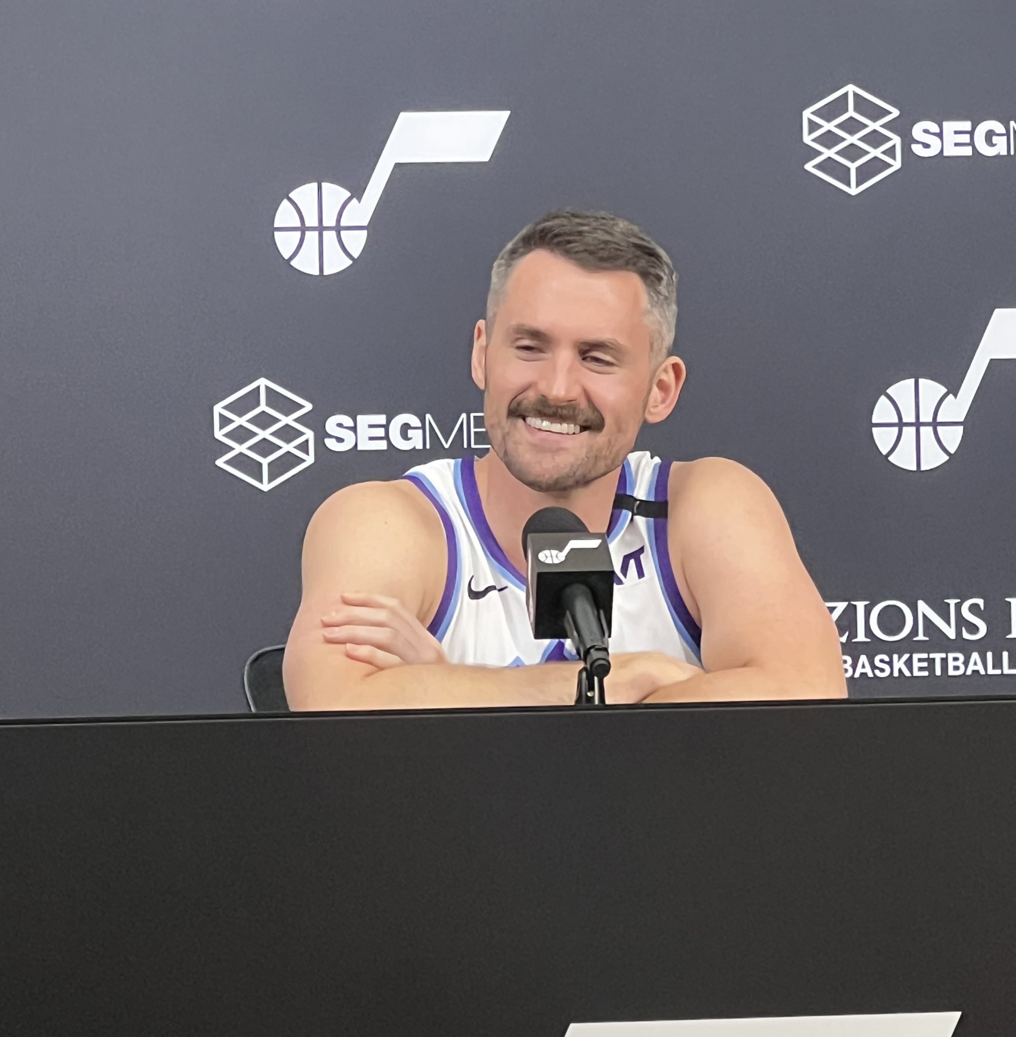 37岁老将凯文·乐福今天参加爵士媒体日,白头发越来越多了。他预计将参加训练营,还没有与爵士进行买断谈判。