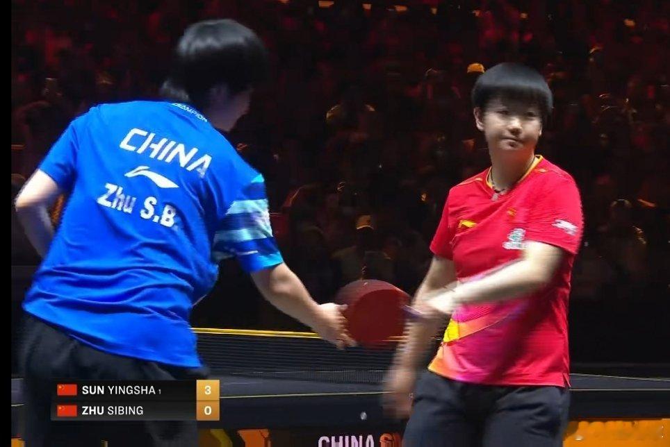 孙颖莎3-0战胜队友朱思冰,晋级16强。