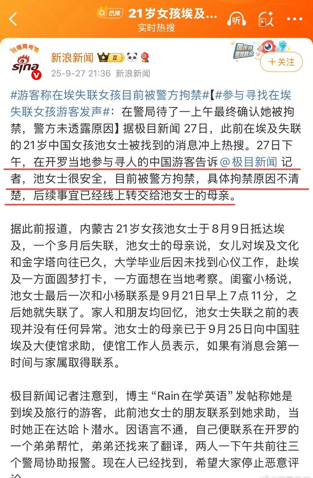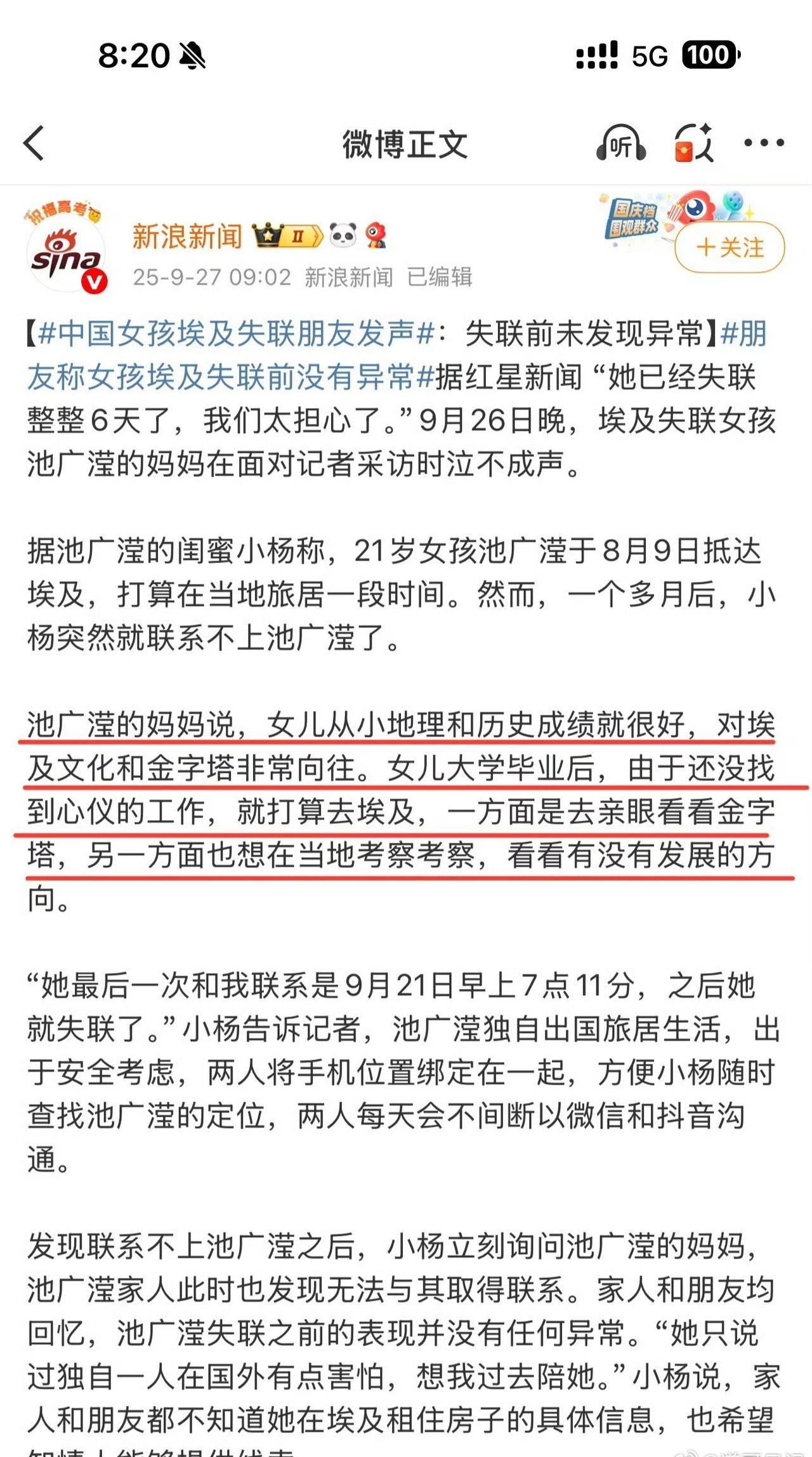 通报来了:埃及失联6天,原来跑埃及从事电诈工作去了!这可太长脸了…… 女孩妈妈:女儿是成绩很好的中国女孩,对埃及文化和金字塔非常向往……