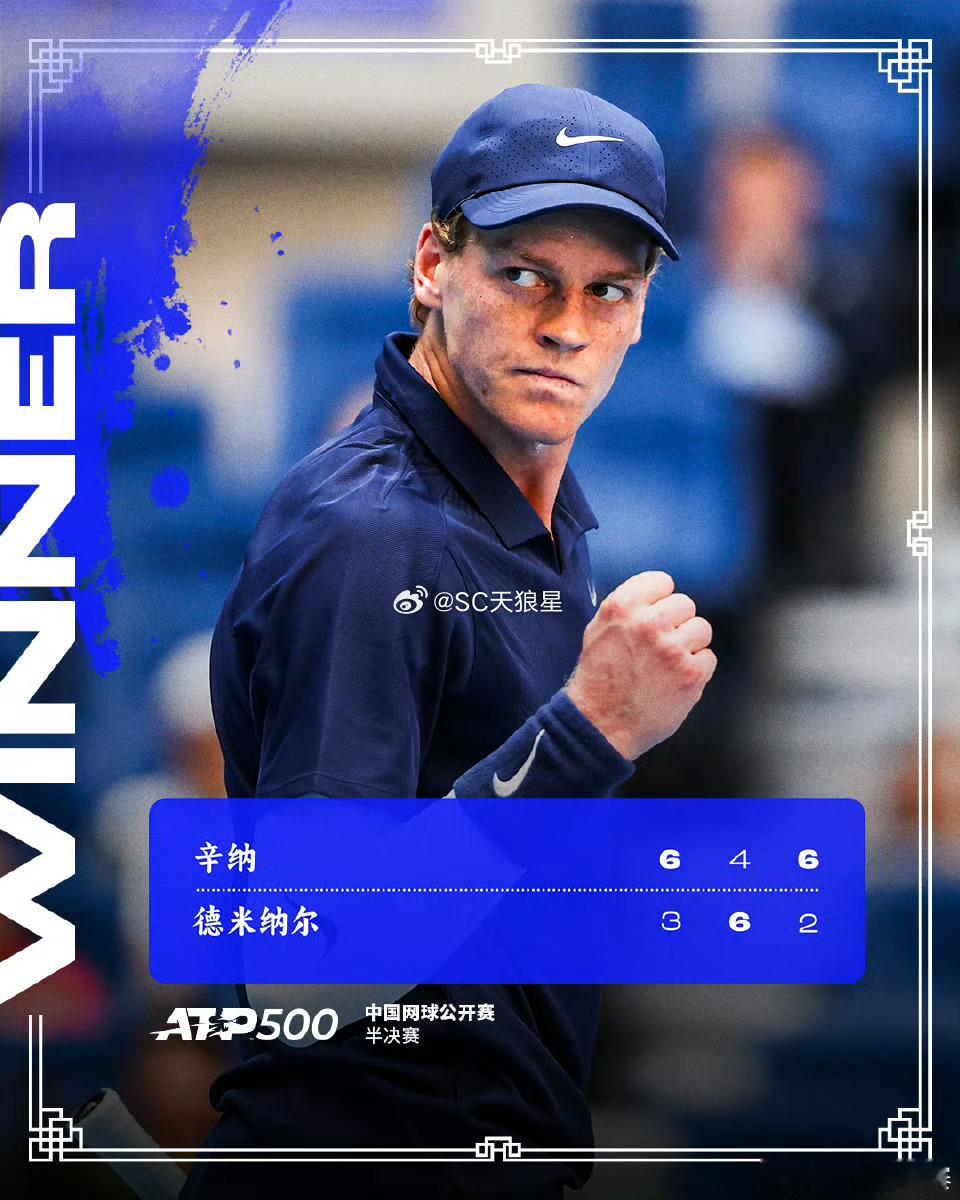 辛纳2:1战胜德米纳尔,连续三年晋级中网男单决赛。