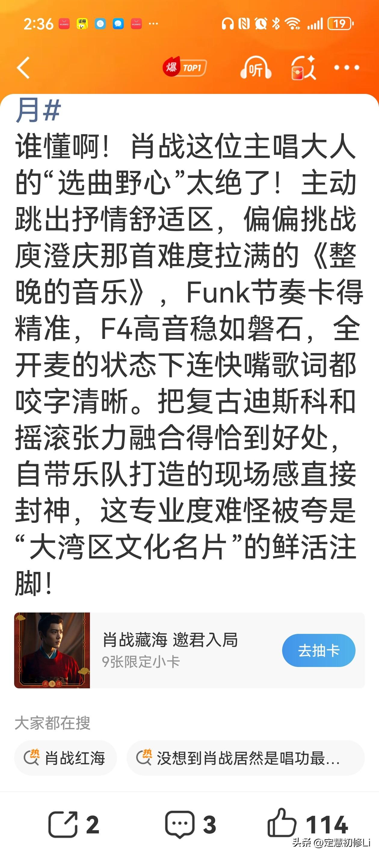 今年肖战的舞台不光稳健唱功扎实,跟乐队的互动合作默契,还有无与伦比的舞台表现力,赢得了全网乐评人高度好评,我觉得最高的评价还是肖战爱音乐,是在尽情玩音乐,所以观众才能那么投入,享受这样一场视听盛宴