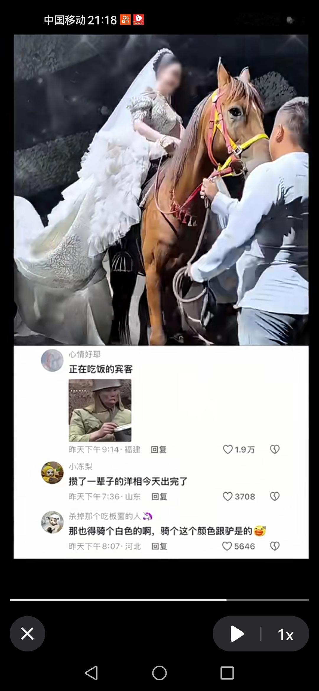 感觉不伦不类的,就是感觉马出现在这种室内很奇怪,新娘穿着白色婚纱骑着一匹棕色的马