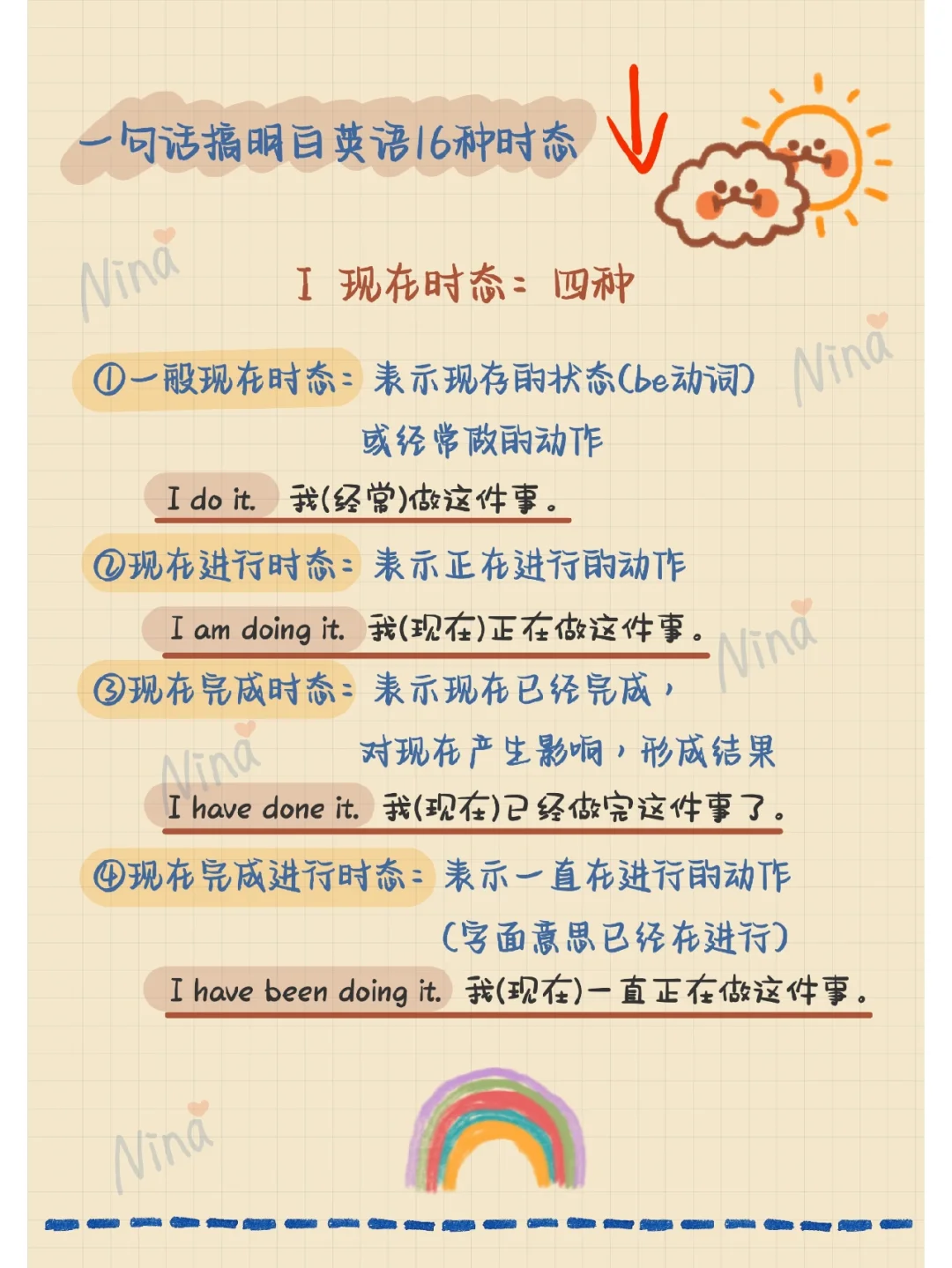 一句话搞明白英语16时态。三种“时”四种“态”你明白了吗?英语笔记 英语语法 学英语 英语学习 英语学习打卡 英语时态 爱好:整理知识点📖,做孩子们爱的手账笔记🌵! 分享系统语法知识,从初级到中级再到高级,脱传统语法的枯燥,编写了大量的口诀,由易到难,通俗易懂,赶紧收藏学起来吧。